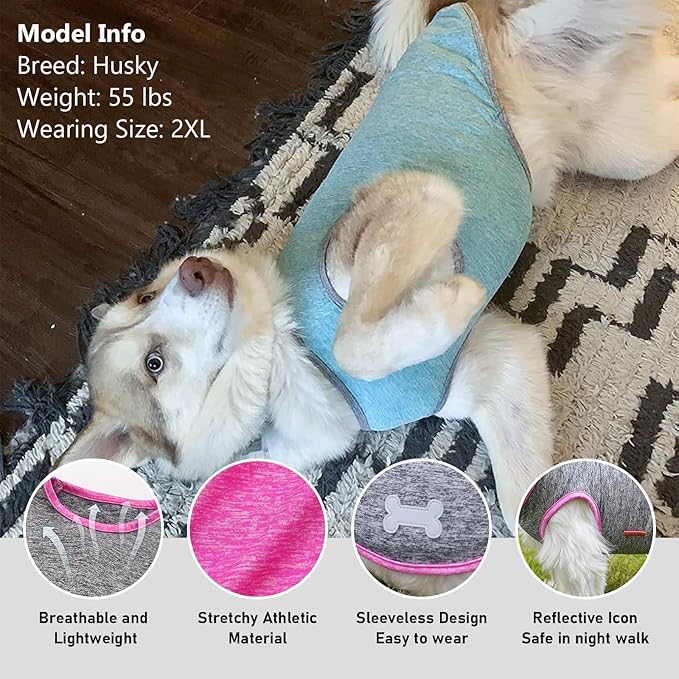 KYEESE 2 Pack Dog Shirts Quick Dry Soft Stretchy Dog T-Shirts with Reflective Label Tank Top Sleeveless Vest Pet Clothes for Small Medium Dogs, XX-Large, Grey+Hotpink