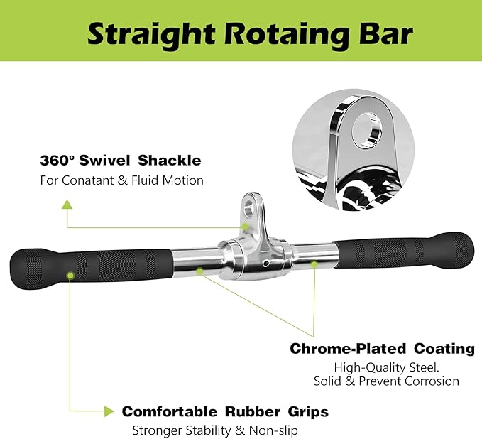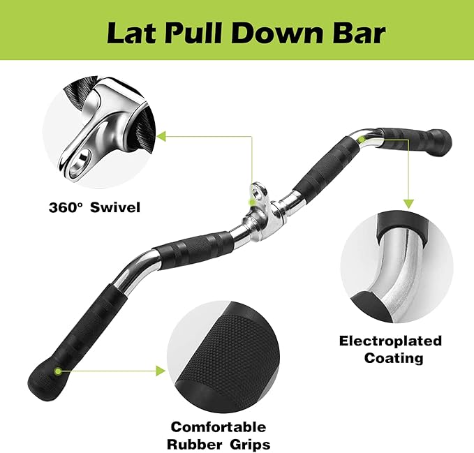 - LAT Pull Down Bar Accessories: Constructed with high-strength, solid stainless steel and friendly textured rubber with polished chrome coating, which is able to attach to any pulley or cable weight machine and ideal for several lat and upper body focused exercises like lat pulldowns, straight arm pulldowns and more, putting up a good performance in sports like rowing. Length of 29.5in