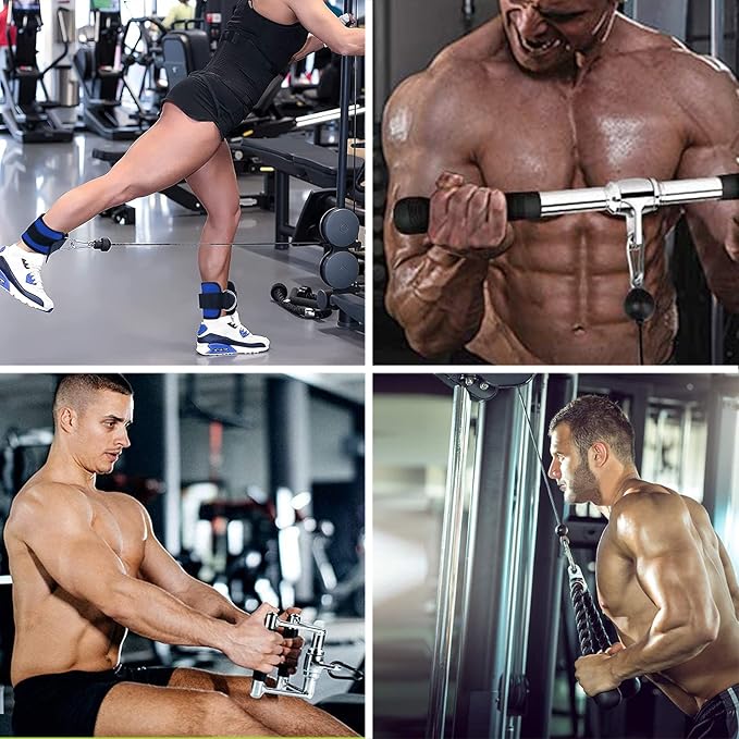 - Multifunctional Exercise: This will be the perfect combination of cable accessories: 1*Curl Pulldown Bar, 1*Triceps Rope, 1*V-Shaped Handle, 1* V Shape Press Down Bar, 1*Straight Bar, 2*Ankle Straps, 5*Carabiner Clips. Perfect for building stronger triceps and grip strength, assisting muscles around elbows, wrists, back, abs and shoulders with different compound pushing exercises. Ideal for fitness centers, home gyms or any training facilities!
