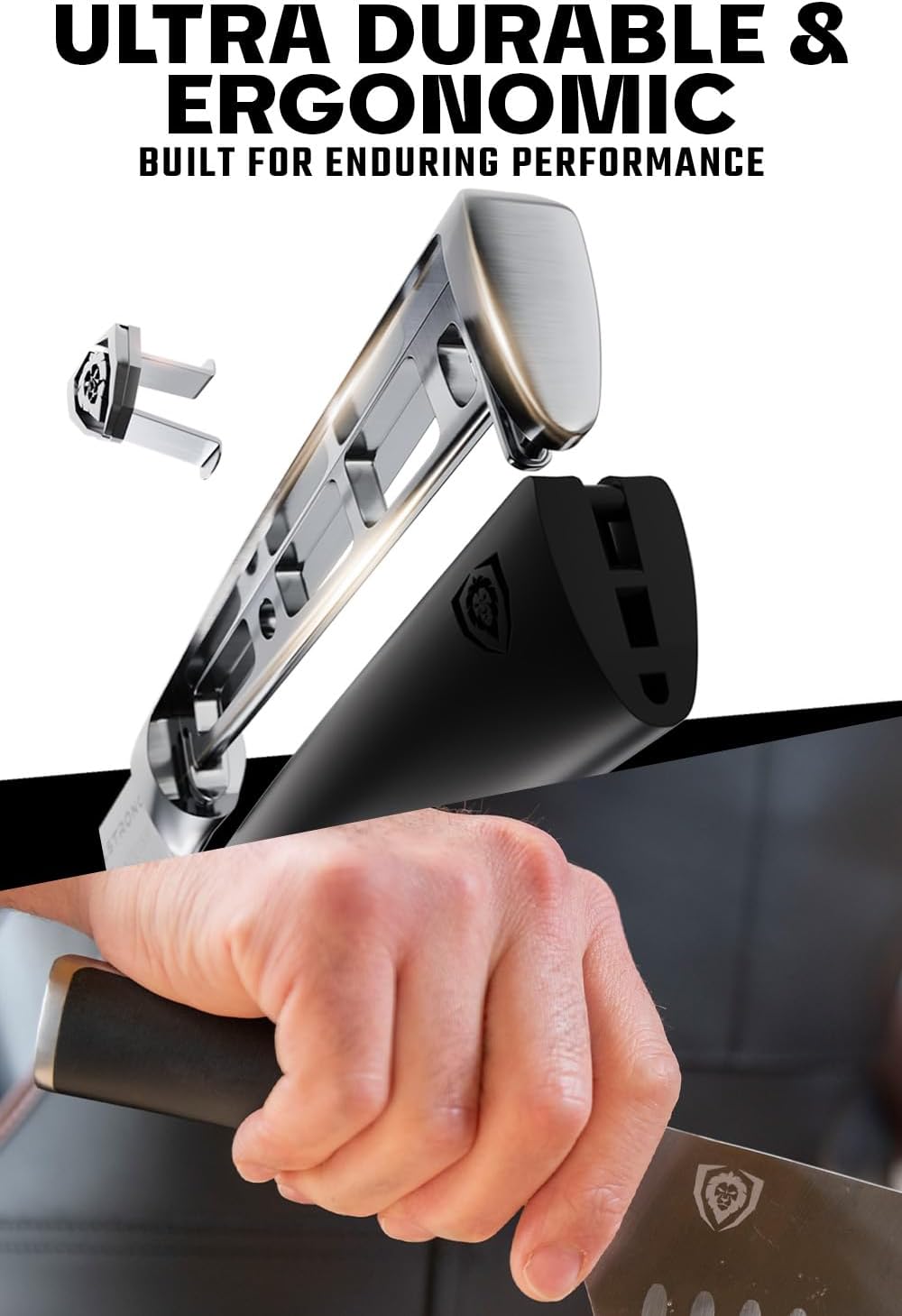 - Stylish and Functional Locking Knife Block: Store and display your knives elegantly with the Dalstrong Carbonized Ash Wood and Aluminum Alloy Rim, designed for both functionality and aesthetic appeal. This handmade block holds all the essential knives for any chef, rivaling traditional walnut knife block in quality, making it an exceptional knife block holder for any kitchen
