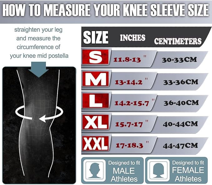 - SUPERIOR QUALITY KNEE BRACE: Made out of a perfect blend of Neoprene (70%) and Polyamide (30%), our knee sleeves are lightweight and sturdy, withstanding frequent washing and daily use.Available in 5 Sizes (S-M-L-XL-XXL), we are confident you will find the pair that suits you best – Check Out Our Product Description For More Info.