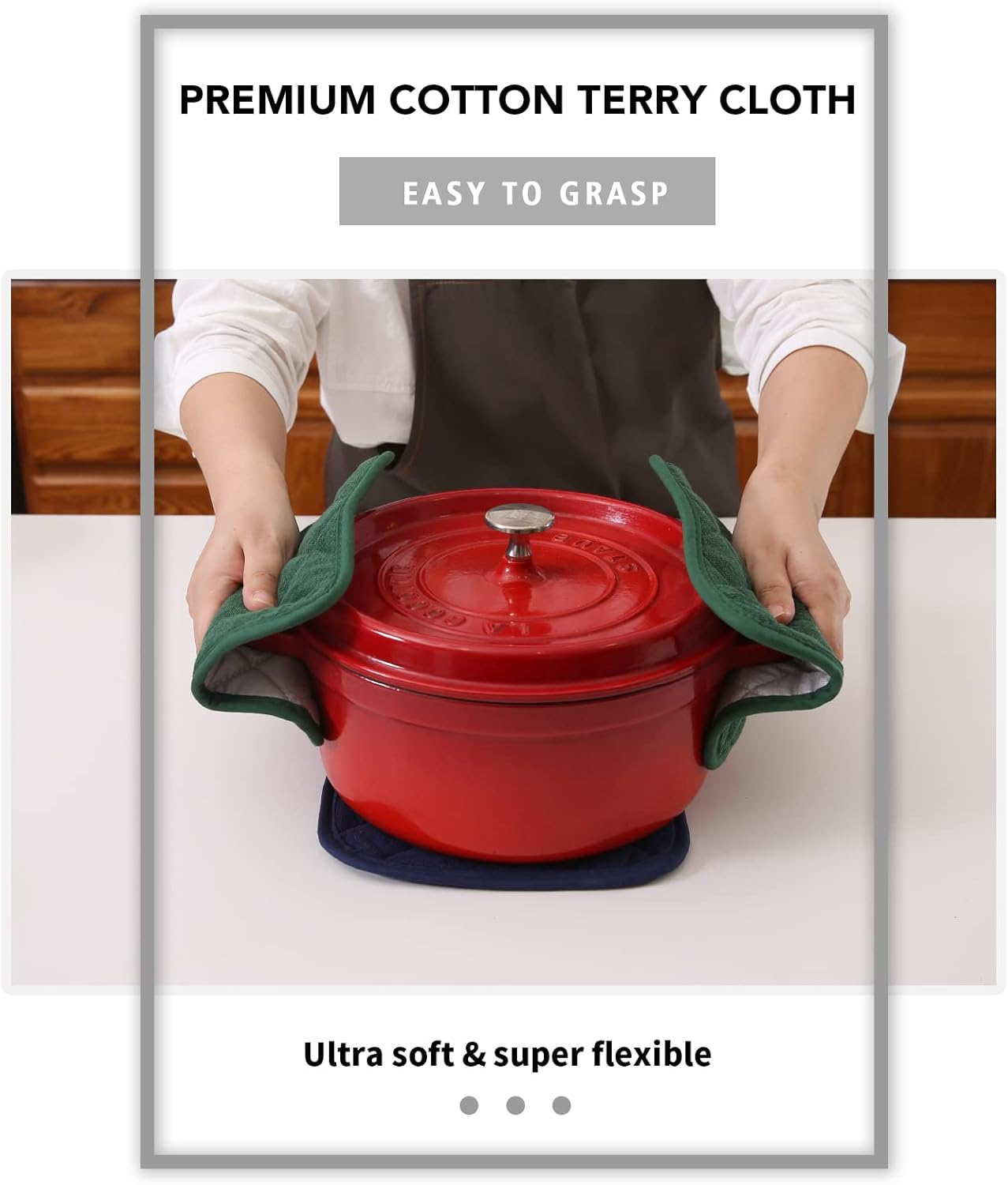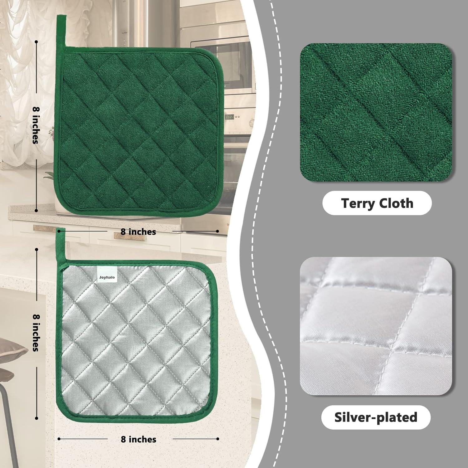 Joyhalo 4 Pack Pot Holders for Kitchen,Cotton Oven Holder with Great Heat Resistance,Non Slip Hot Pads for Kitchen Clearance,Dark Green