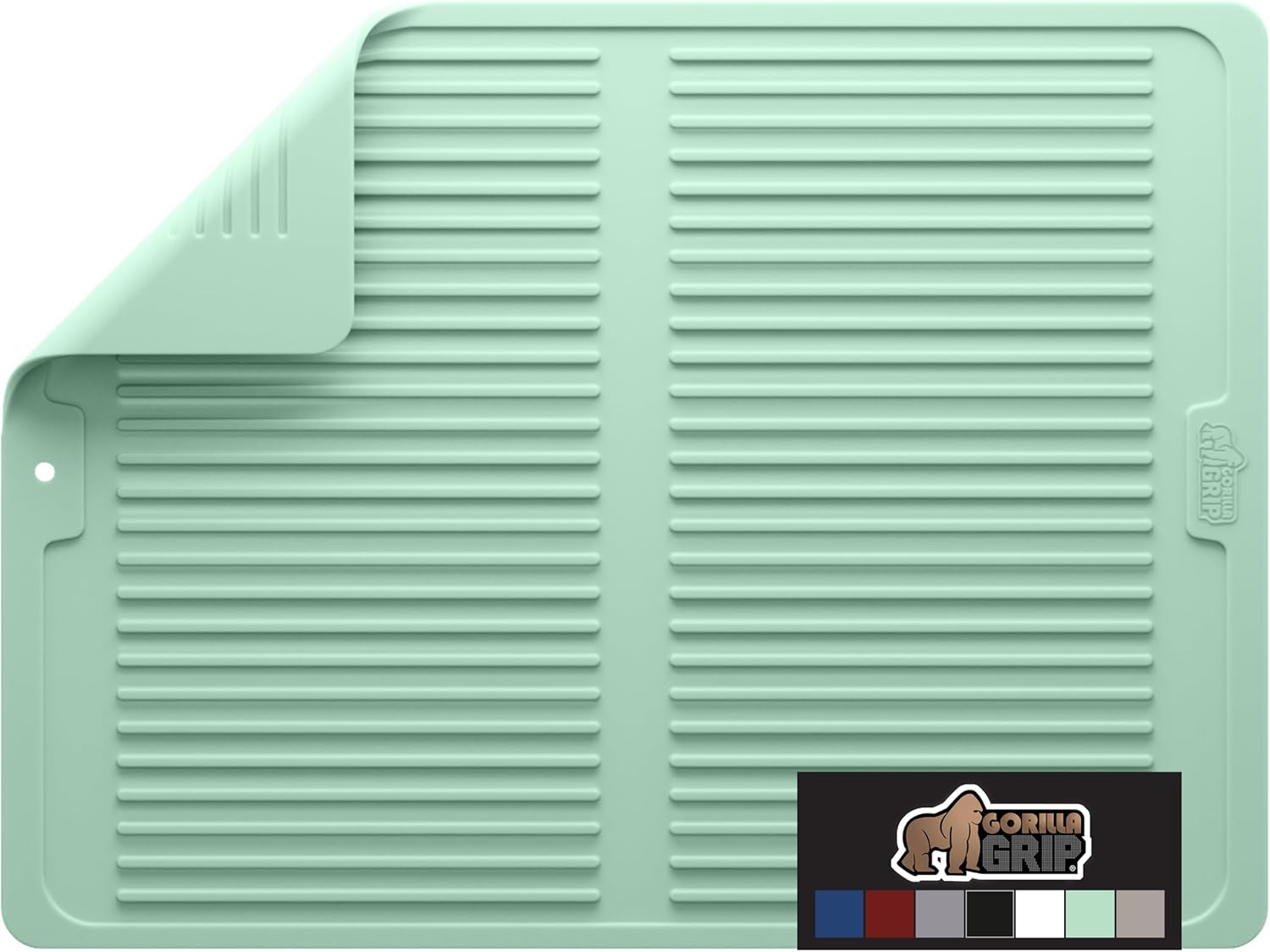 GORILLA GRIP 100% BPA-Free Patented Silicone Dish Drying Mat for Kitchen Counter, 18x16 Inch, Water Catching Ribbed Design, Easy Clean Waterproof Sink Liner, Heat Resistant, Fits Under Rack, Mint