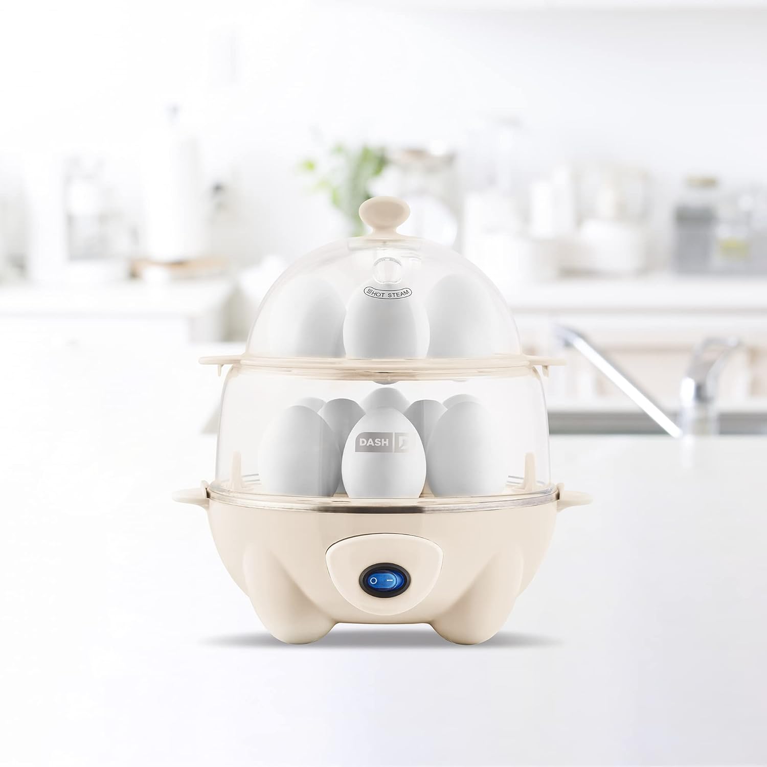 DASH DEC012CM Deluxe Rapid Egg Cooker: Electric, 12 Capacity for Hard Boiled, Poached, Scrambled, Omelets, Steamed Vegetables, Seafood, Dumplings & More with Auto Shut Off Feature, Cream