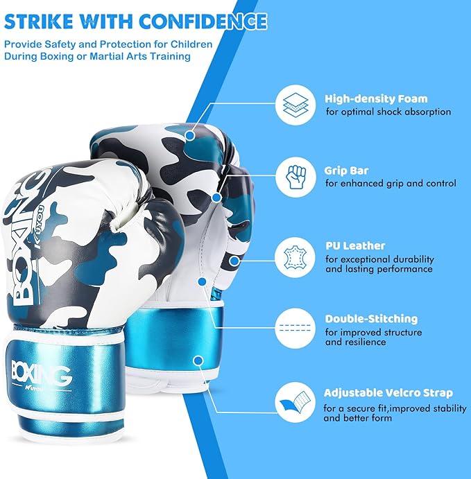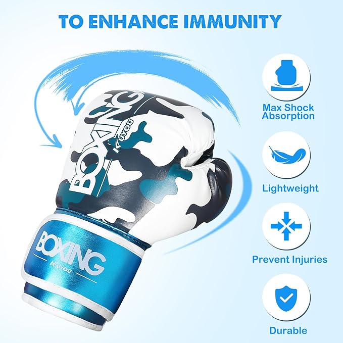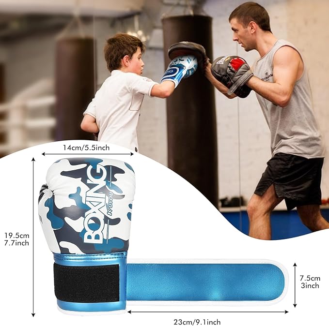 - 【4 oz Pro Boxing Gloves】with cartoon style and blue/ red bright color design, are loved by kids, boys, and girls. 4oz kids boxing gloves fit for children, recommend for 3 to 9 year old. Ideal for MMA, Boxing, Muay Thai, Kickboxing, Judo, Karate, Self Defense, Krav Maga Training.