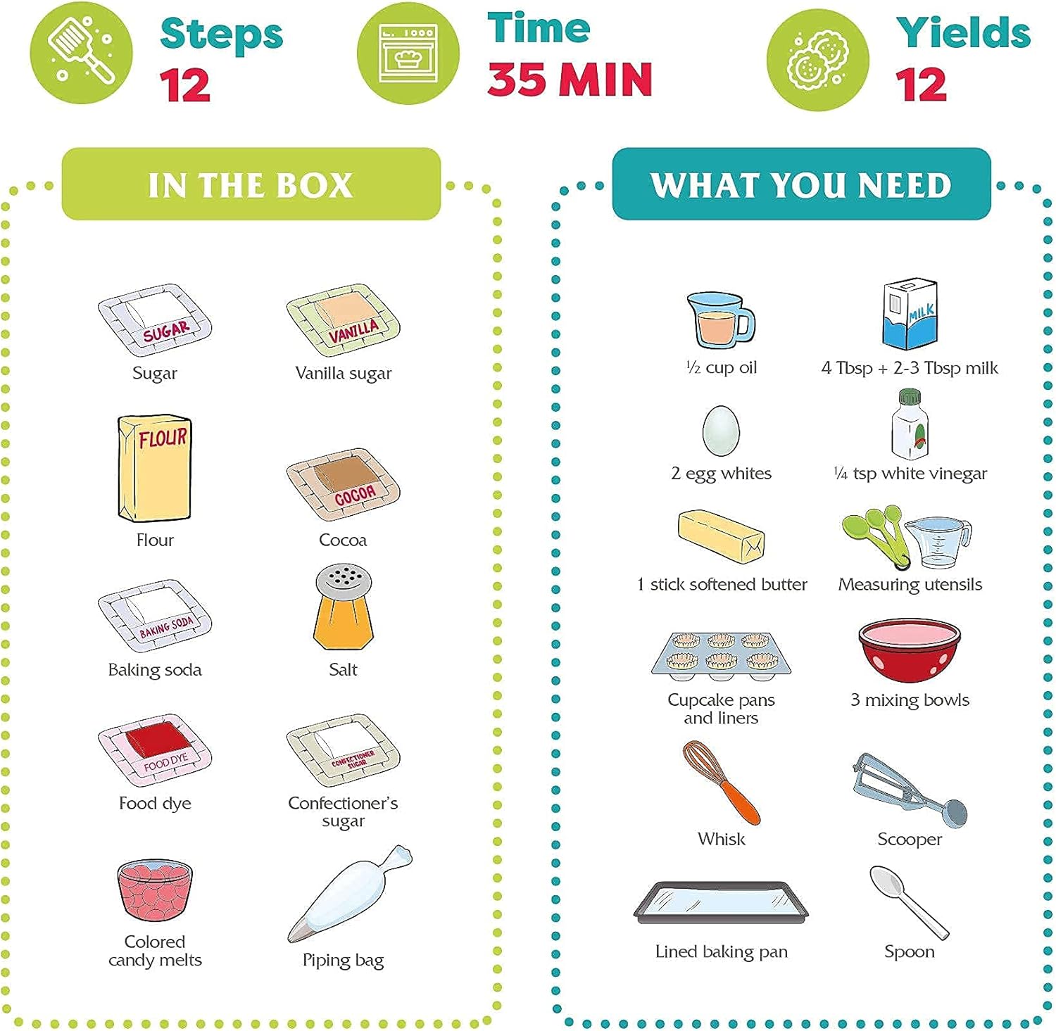 - A BOX OF SURPRISE - Baketivity Kids Baking Activity Kit packs all the dry ingredients needed to make delectable Red Velvet Cookie Bites. These are Certified Kosher and vacuum-packed to preserve freshness.