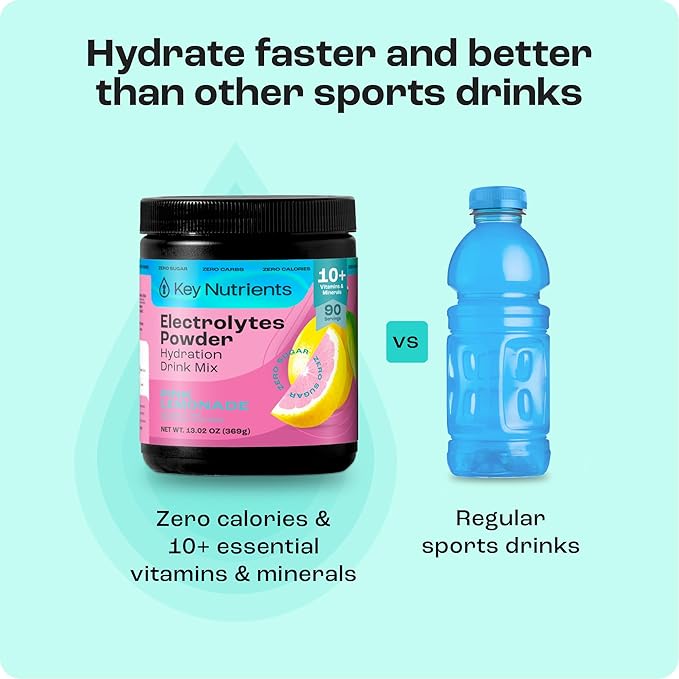 - Fresh Pink Lemonade - Staying hydrated goes beyond just drinking water, and a delicious pink lemonade electrolyte powder drink is the key. Free of calories, carbs, and sugar, this electrolytes powder makes hydrating refreshing and guilt-free!