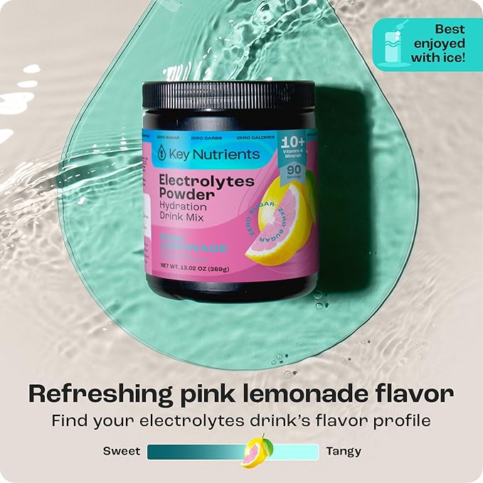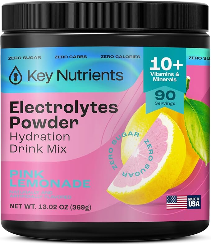 KEY NUTRIENTS Multivitamin Electrolytes Powder No Sugar - Fresh Pink Lemonade Electrolyte Powder - Endurance & Energy Supplement - Hydration Powder - No Calories - 90 Servings - Made in USA