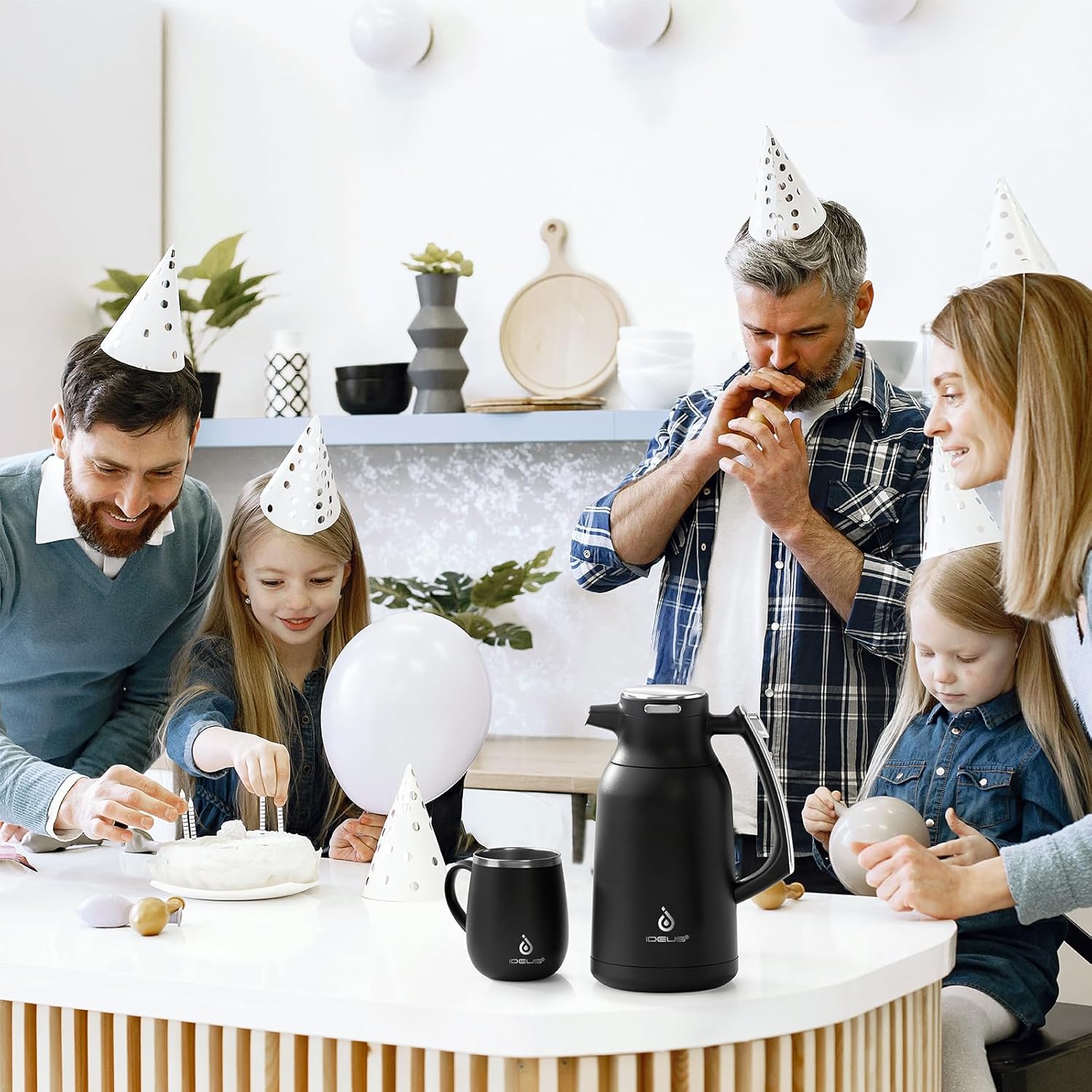 - Unique Exterior - Designed by professional designers, these coffee carafes have a unique and elegant appearance which combines noble and modern elements.Double-wall stainless steel vacuum insulation allows for maximum temperature retention.