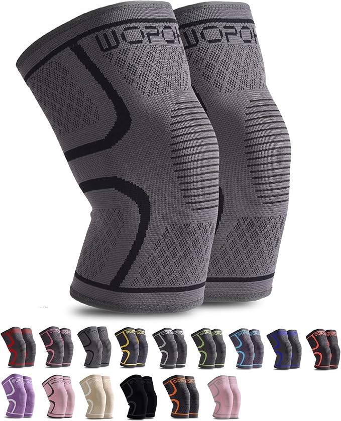Knee Brace Sleeves for Weightlifting Working out, Knee Pain Relief for Meniscus Tear Arthritis ACL MCL (2 Pack)