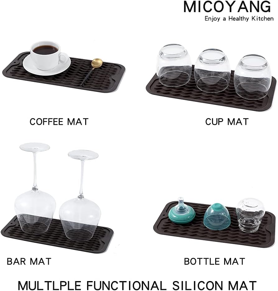 Silicone Dish Drying Mat for Multiple Usage,Easy clean,Eco-friendly,Heat-resistant Silicone Mat for Kitchen Counter or Sink,Refrigerator or Drawer Liner Coffee S 12 inches x 6 inches