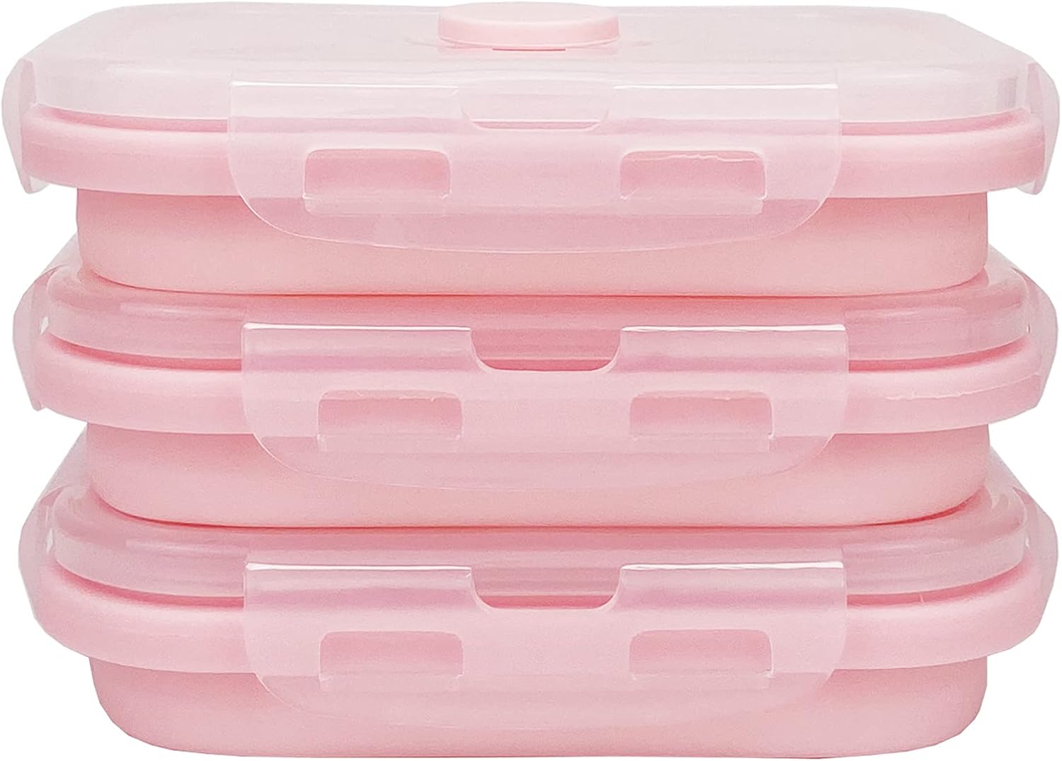 CCyanzi 3piece Collapsible Food Storage Containers with Lids, Silicone Lunch Container, Microwave & Freezer Safe, Space Saving for Kitchen Cabinet and Camping Backpack,(pink)