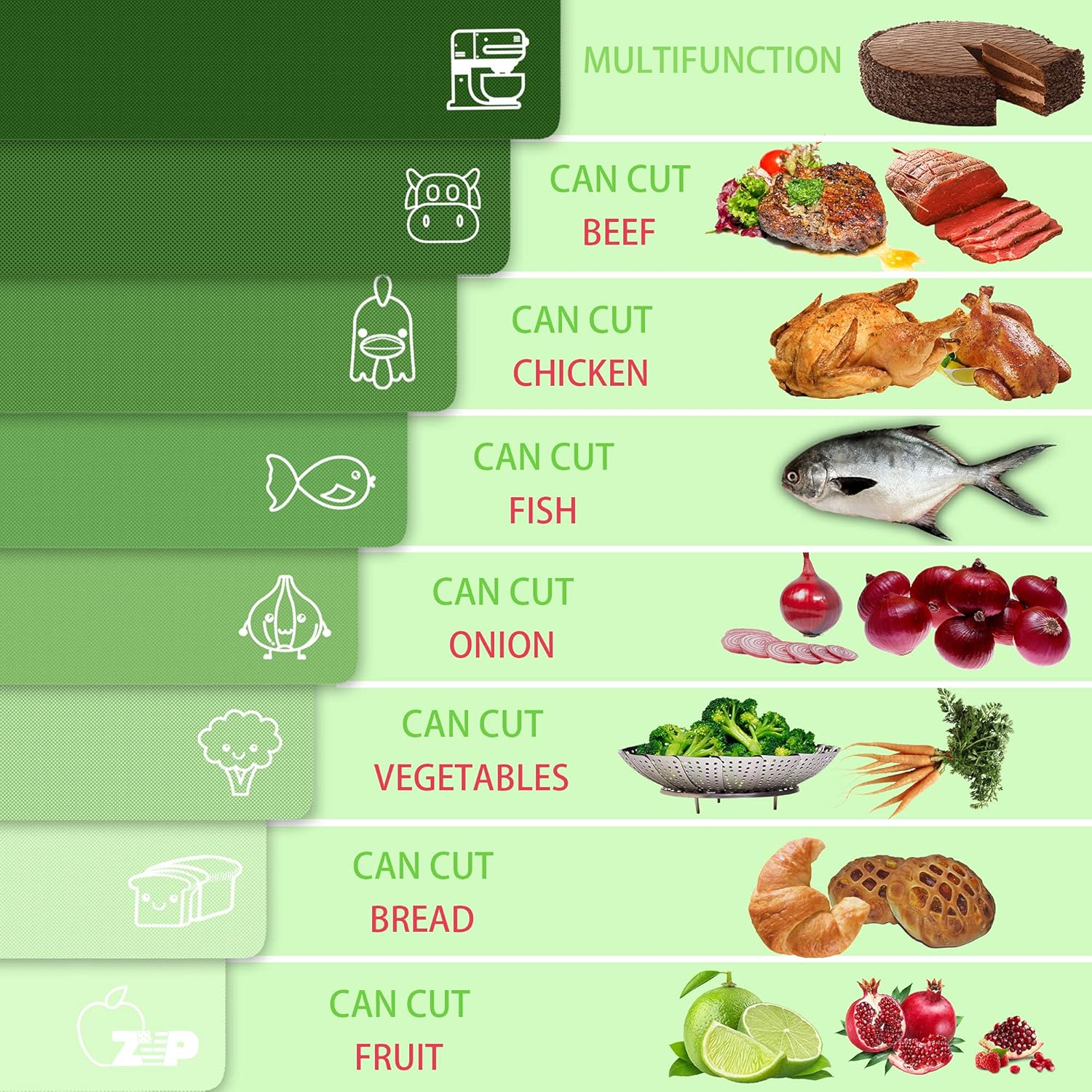 - Unique color gradient style delivers a charming appearance. Decorative gradient color will beautify your kitchen. The cutting boards with 8 different shades of green from light to dark for fruits, bread, vegetables, onions, fishes, chicken, beef, and baking.