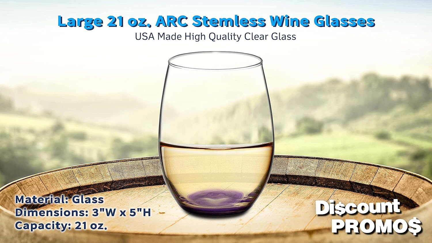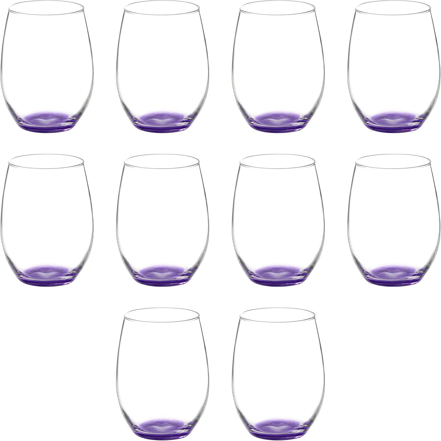 DISCOUNT PROMOS 10 ARC Stemless Wine Glasses Set, 21 oz. - Chardonnay, Cabernet, Merlot, Sauvignon - Purple