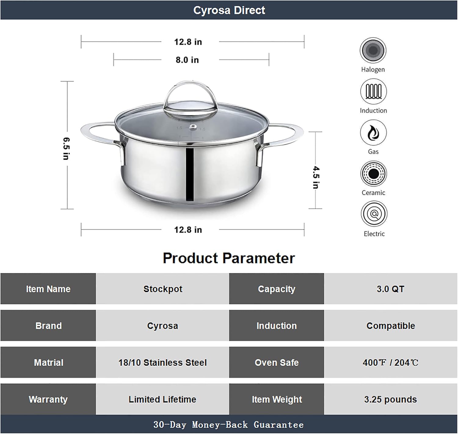 - Compatible with All Stovetops- Oven & Dishwasher safe: Works with gas, electric, ceramic, and induction cooktops for maximum cooking flexibility. Oven safe (400°F with lid / 550°F without). Dishwasher safe for easy care; backed by our lifetime limited warranty and customer support.