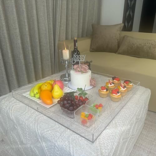 Extra Large Clear Acrylic Ottoman Tray with Cutout Handles 24x24 Inch Over-Sized King-Size Serving Tray Boot Organizer Decorative Tray for Living Room Bedroom,Bathroom and Kitchen Entryway