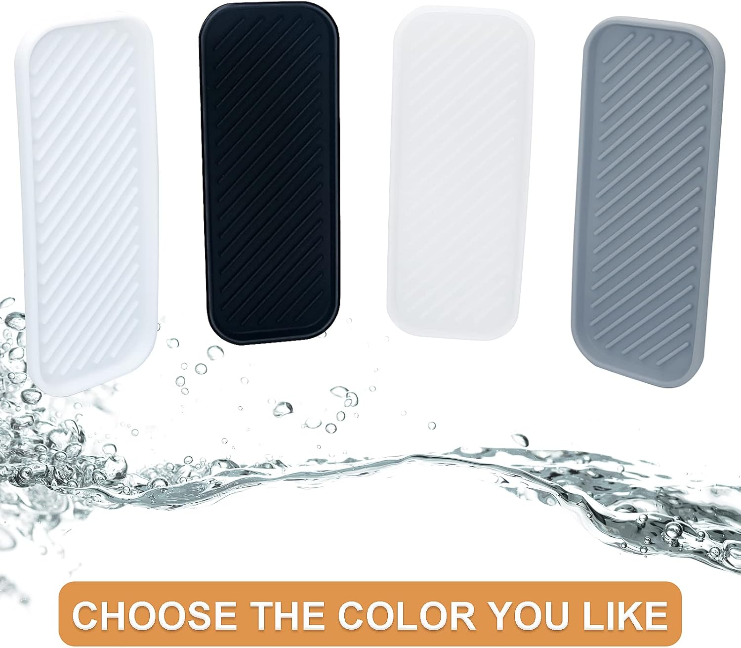 Silicone Organizer Tray, Soap and Sponge Holder for Kitchen Sink, Bathroom - Storage Tray for Dish Brush, Soap Dispenser, Dishwashing Accessories- 2 Pack (Black)