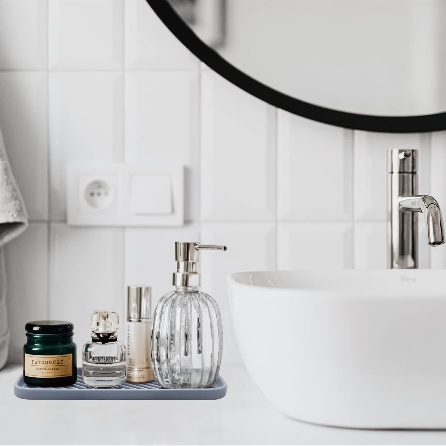 Silicone Organizer Tray, Soap and Sponge Holder for Kitchen Sink, Bathroom - Storage Tray for Dish Brush, Soap Dispenser, Dishwashing Accessories- 2 Pack (Gray)