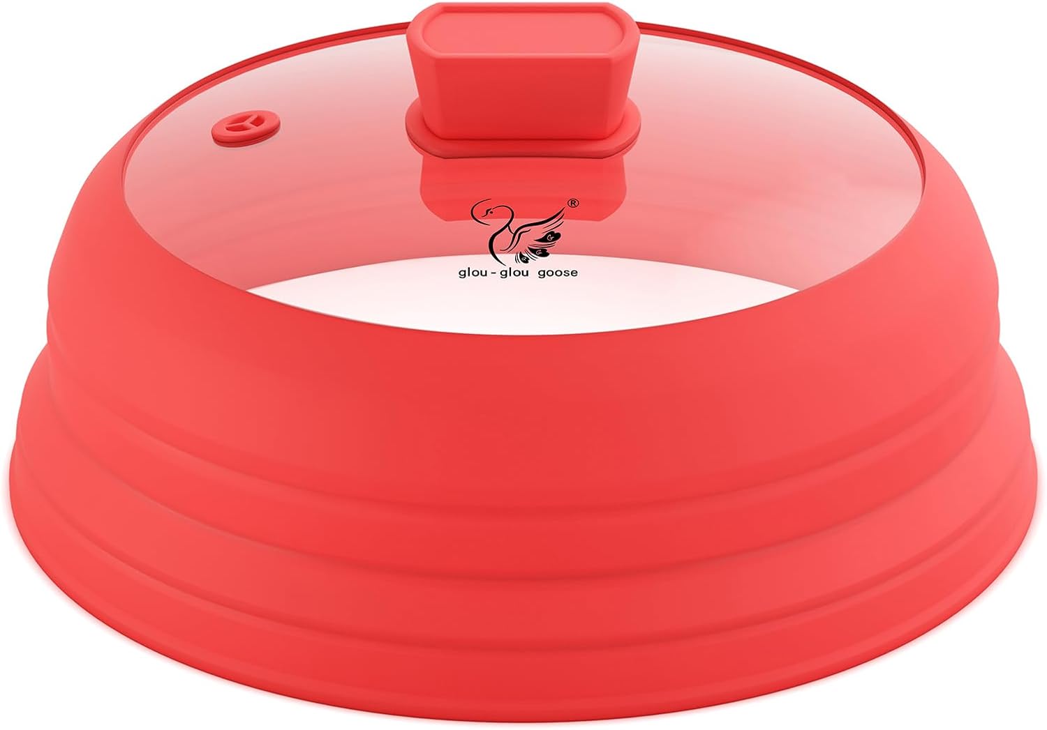 Microwave Splatter Cover Glass Splatter Guard Lid with Collapsible Silicone for Food Pot Plate Cover 10.8 inch Red