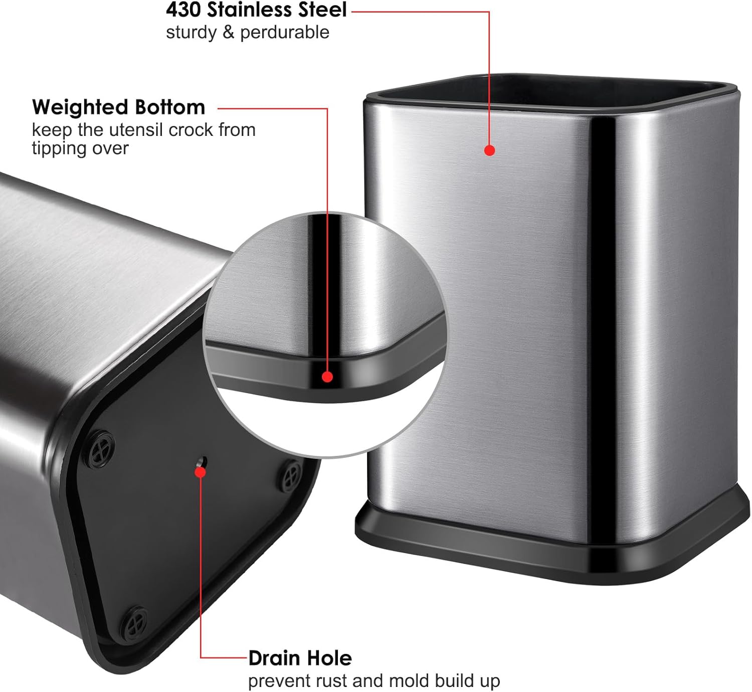 - EASY CLEANING: Detachable design allows you to easily clean this stainless steel utensil crock.