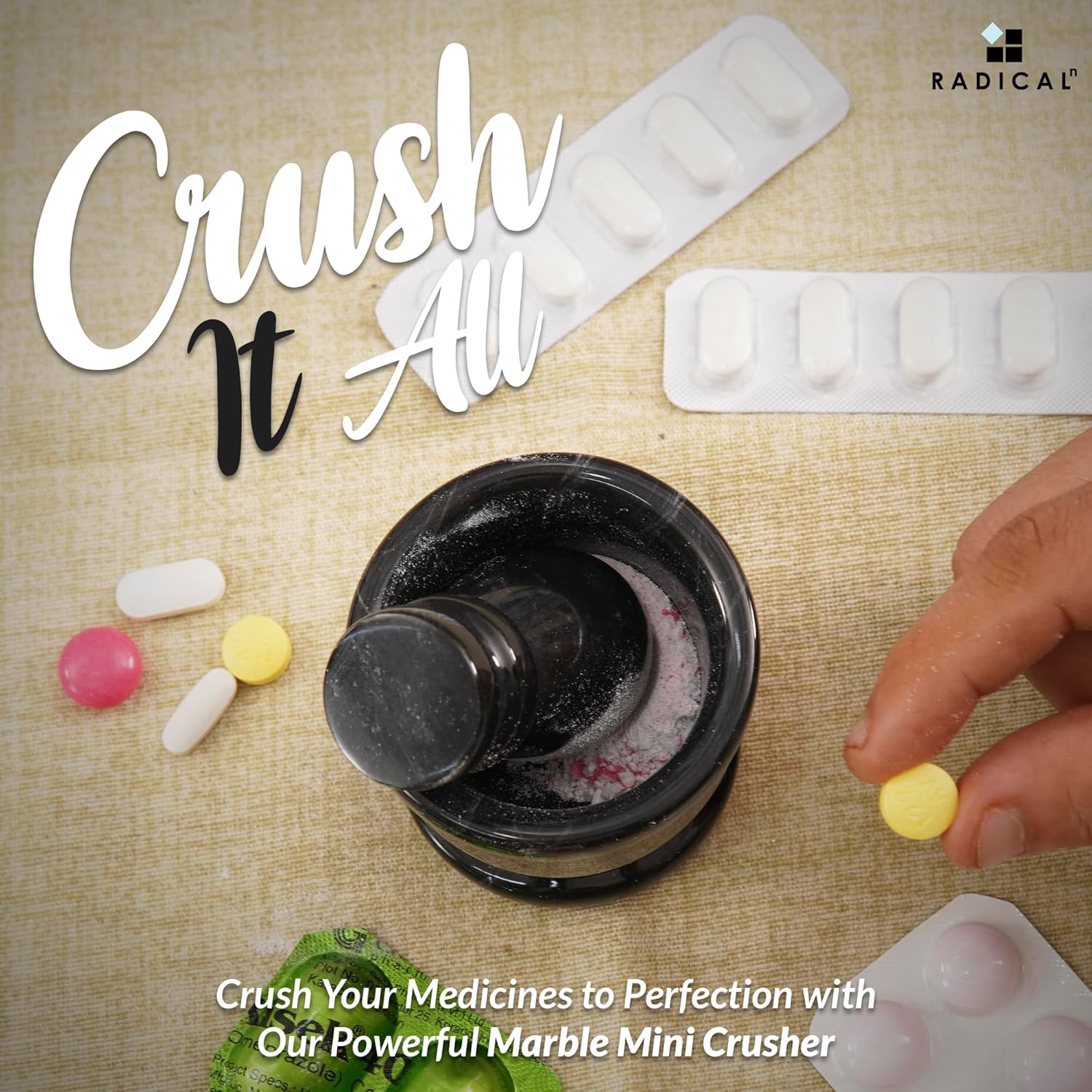 Radicaln Marble Mortar and Pestle Set Black 2.5" Inches Handmade Spice Grinder for Kitchen Herb Grinder Bowl & Garlic Crusher for Kitchen Accessories