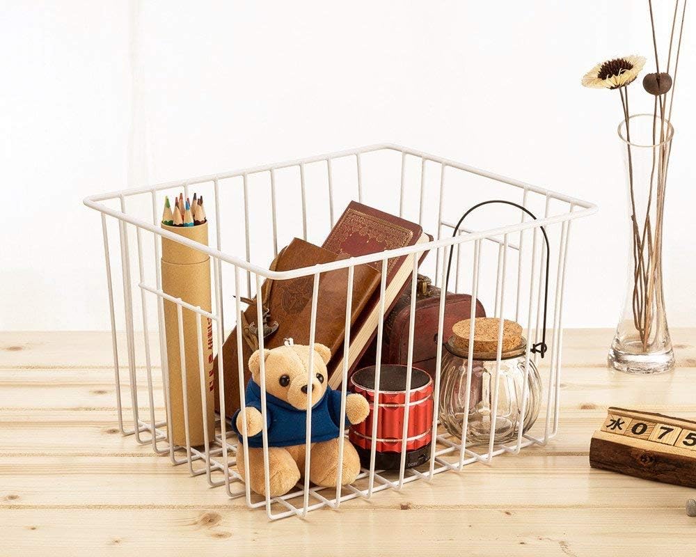 SANNO Freezer Baskets Freezer Wire Storage Basket, Organizer Food Storage Bin with Handles for Cabinets, Pantry, Closets, Bedrooms 11.8" x 11.8" x7"
