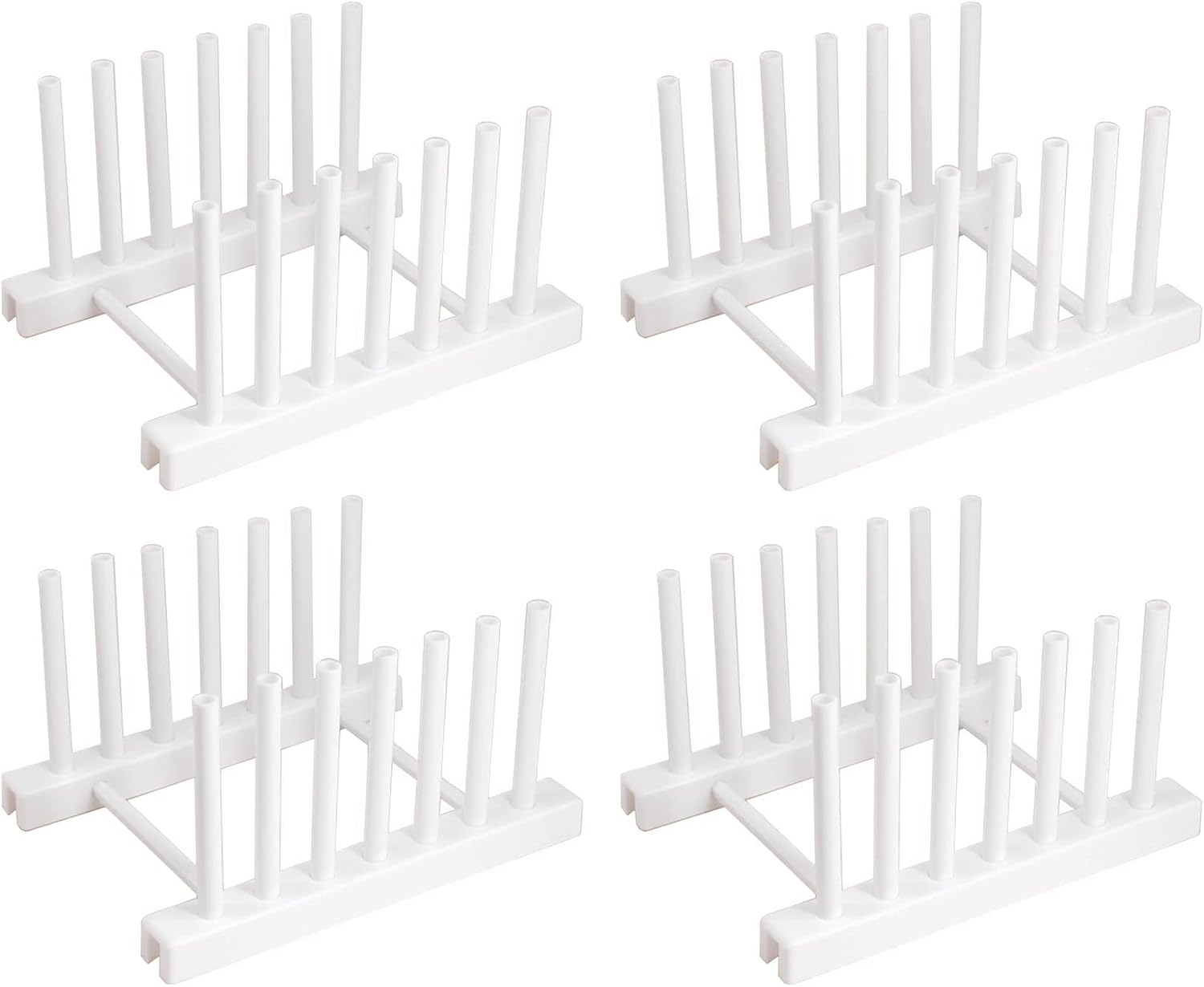 White Plate Organizer for Cabinet 4 Pack, Plstic Plate Rack Stand Keep Dry for Dish, Bowl, Bakeware, Serving Tray and More, Plate Holder for Cabinet Rack, Dish Organizer Rack for Cabinet