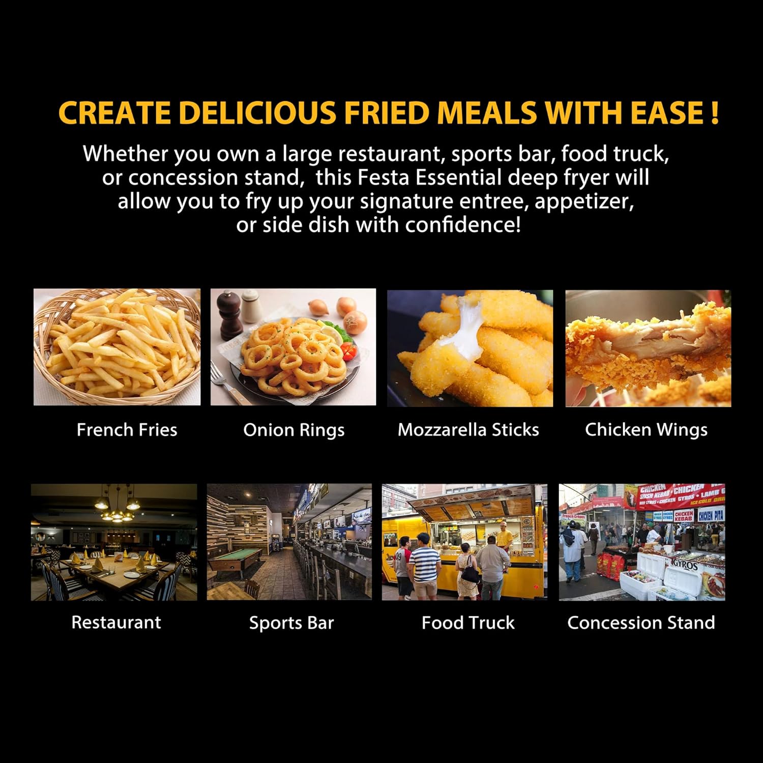 - 🍤【SAFE TO USE】 - A safety thermostat automatically cuts the power when oil reaches the temperature of 428 degrees F. An internal microswitch disconnects the power when the element box is lifted. A built-in front drain valve facilitates safe oil removal. An element cover prevents debris from gathering on the element. The fry basket is complete with an ergonomic cool touch handle.
