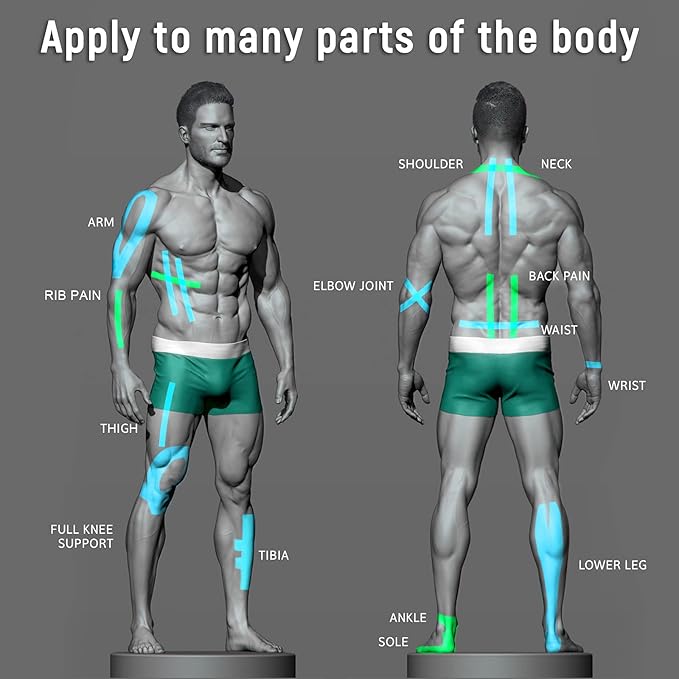 - ⚽️【Faster Recovery】Reduce tissue pressure and support muscles and joints, helping you recover from pain faster. Kinesiology tape is used for knees, shoulders, back, soles, elbows, etc.