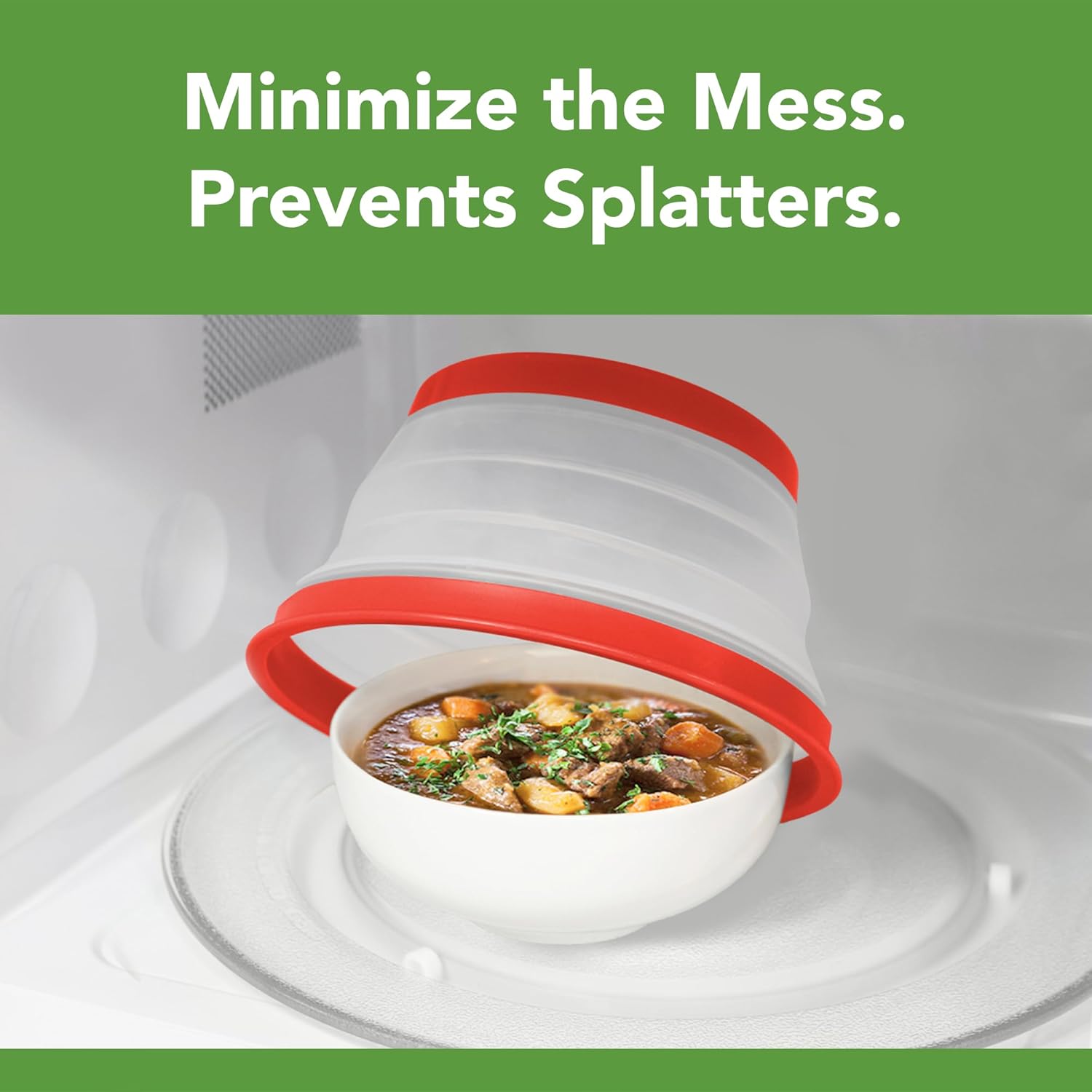 Tovolo Microwave Splatter Cover for Food, Small (Candy Apple Red) - Collapsible & Vented Silicone Splatter Guard Lid - Microwave Plate & Dish Cover with Handle - BPA-Free Kitchen Gadget for Meal Prep