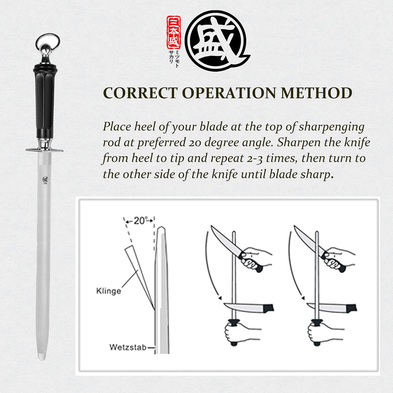 - KNIFE SHARPENER ROD USE NOTE: MITSUMOTO SAKARI products have passed strict quality audits. If you encounter any problems when using your chef's knife, please provide us with suggestions. Our service team will give you a satisfactory solution