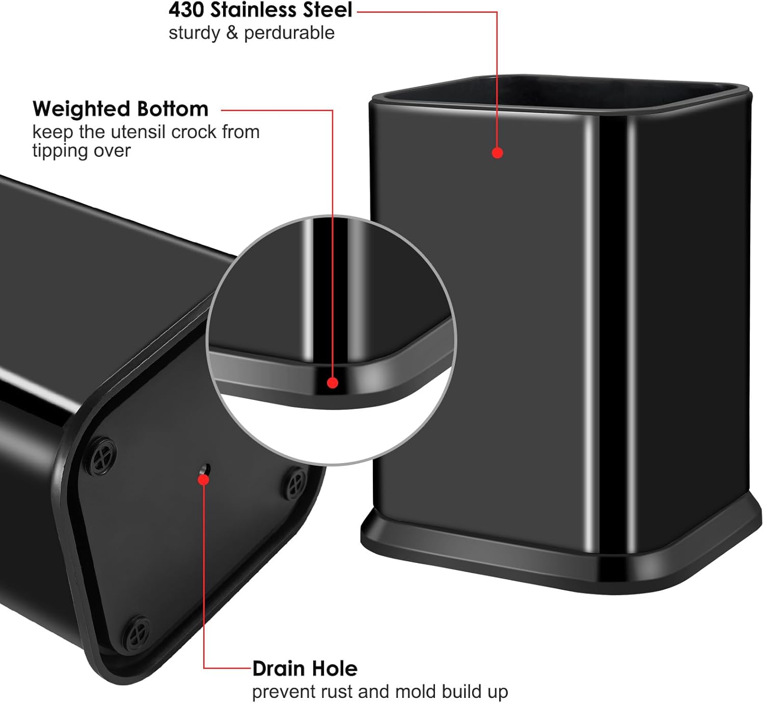 - MODERN DESIGN: Black color is absolutely modern and all-match, extra thick stainless steel for metal heavy-duty, sturdy and has good durability; It's a fashion and modern kitchen utensil organizer on your counter.