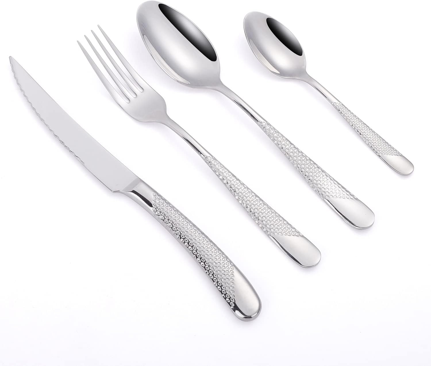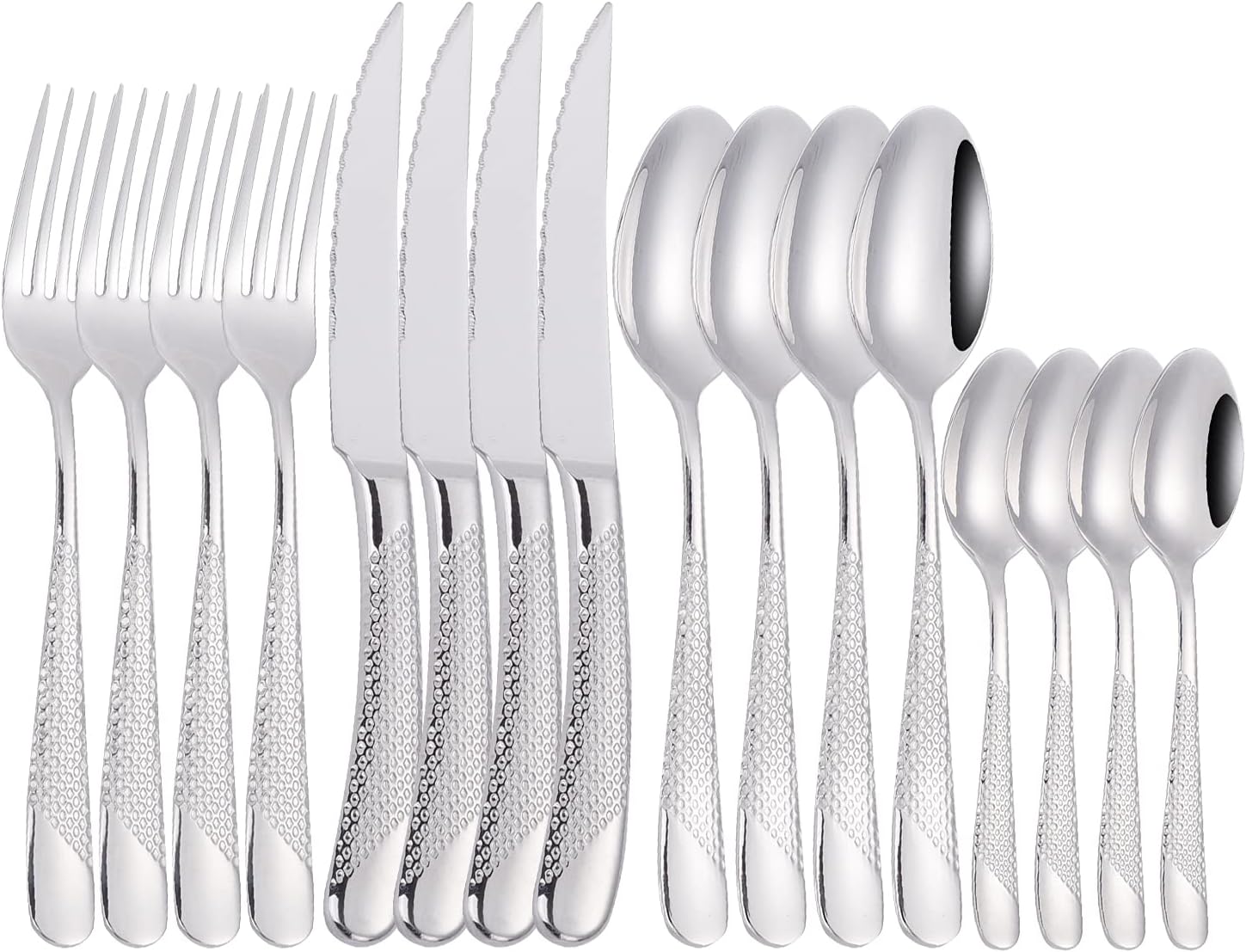 - 4.【Service for 4】:This silverware set includes 4 dinner fork, 4 dinner spoons, 4 dinner knives, 4 tea spoons, It can satisfy most family of 4 people