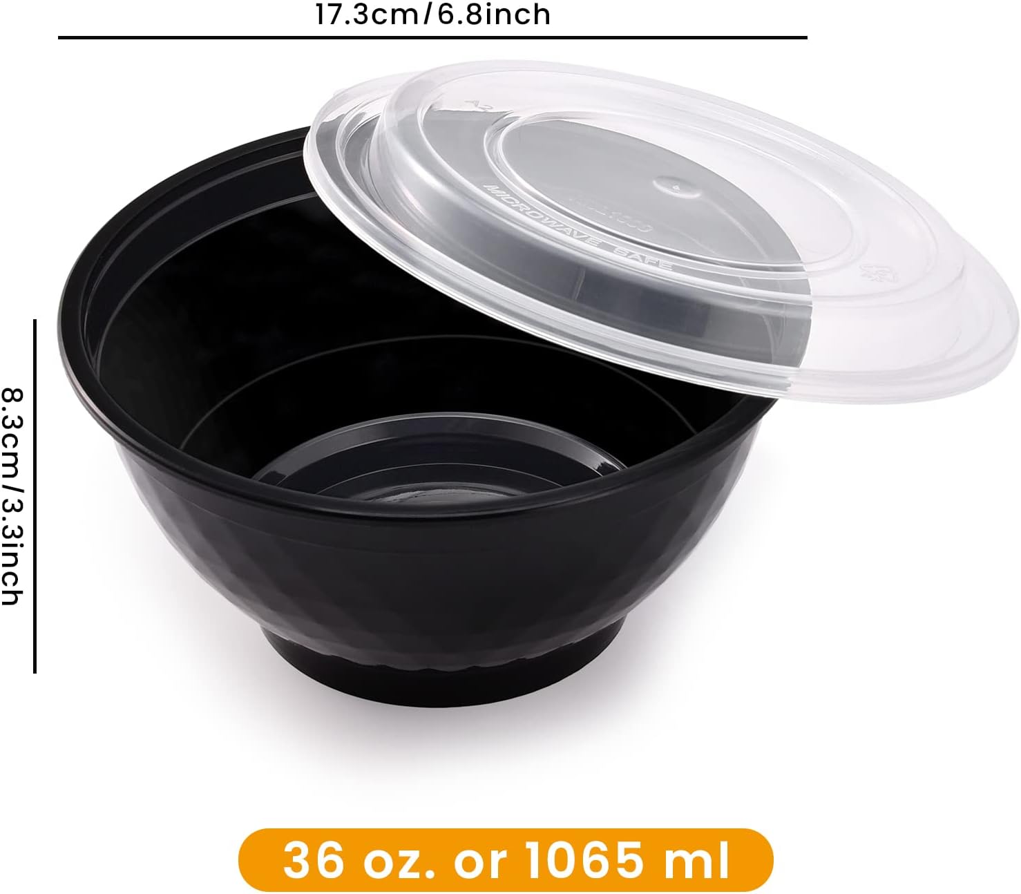 36oz Extra-Thick Meal Prep Bowls with Lids, Plastic Containers with Clear Covers for Noodles, Poke Bowl, Salad, Soup - Freezer, Microwave & Dishwasher-Safe (30Pack)