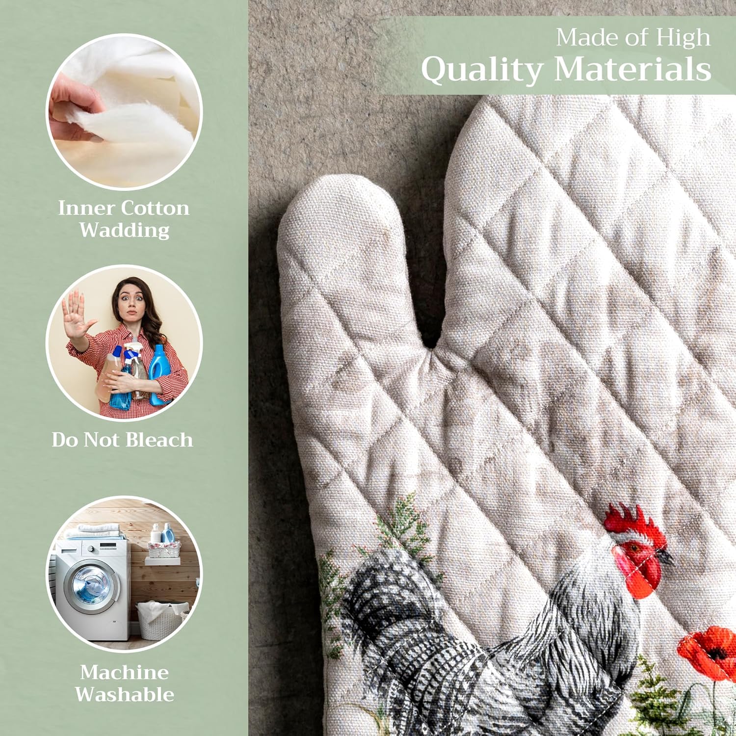 Maison d' Hermine Oven Gloves 100% Cotton Oven Mitt 7" x 13" with Loop Heat Resistant, BBQ, Cooking Gloves, Baking, Grilling, Kitchen, Handling Hot Pans Spring/Summer (Pack of 1, Basse Cour)