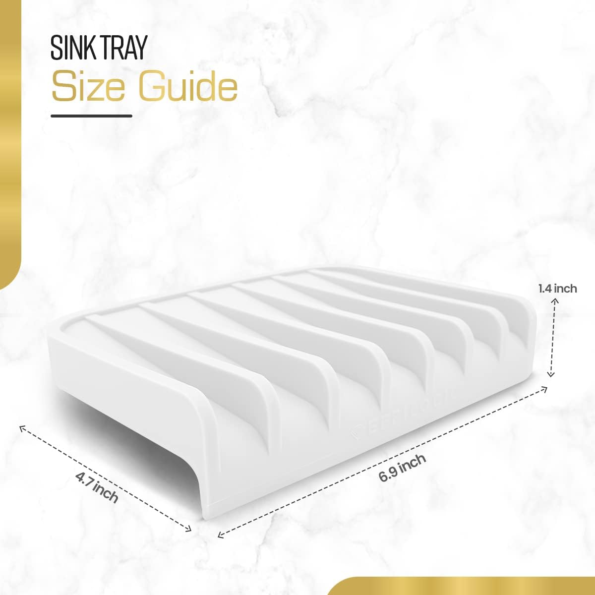 - ✅ FOOD SAFE FLEXIBLE SILICONE AND DESIGNED FOR UNDERMOUNT SINKS: This Kitchen soap tray is made of heat resistant, dishwasher proof (-40°F to 390°F), flexible silicone material which is BPA free. Sponge holder is thick and durable. It can be used as a silicone drying mat for kitchen counter. Dry all your day to day items such as fruits, vegetables, utensils, soap bottles , soap dispenser, sponges, and more. This sink tray comes in 3 great colors Gray, White and Black