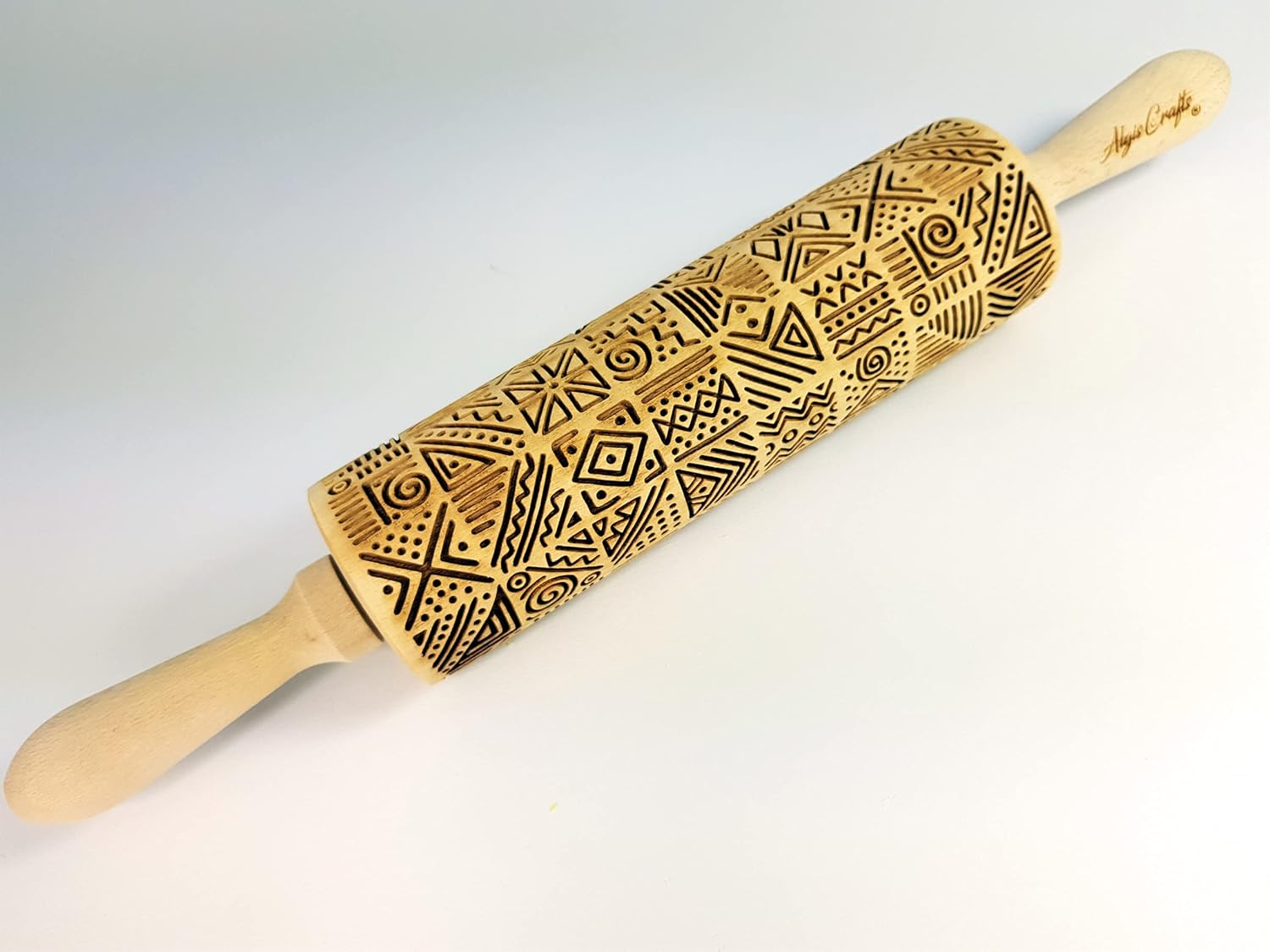 AFRICA Embossing Rolling Pin Dogh Roller with Tribal Pattern for Embossed Cookies and Pottery by Algis Crafts