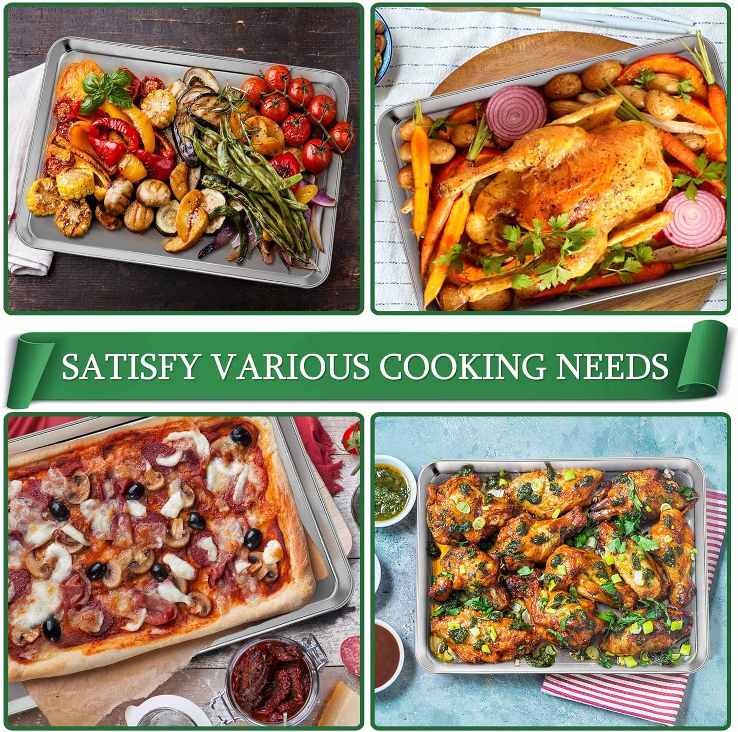 - 【2PCS BAKING PANS】2Pcs baking pans with size 16 x 12 inch, Perfectly fit most regular oven, 1 Inch deep full sides help to cook more food and can contain more sauces, Smooth rolled edges are comfortable to hold and can protect your hands roundly, 2 Large size sheets pans are convenient to bake plenty of food for family gathering or friends party, Also can be used as serving trays or cookie trays
