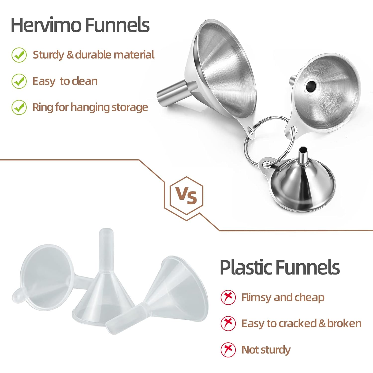 - Wide Use - The mini kitchen funnel set with narrow stem is perfect for filling small bottles or flask with essential oils, juice, salt, sugar, spices, pepper, and other dry Ingredients and powder.