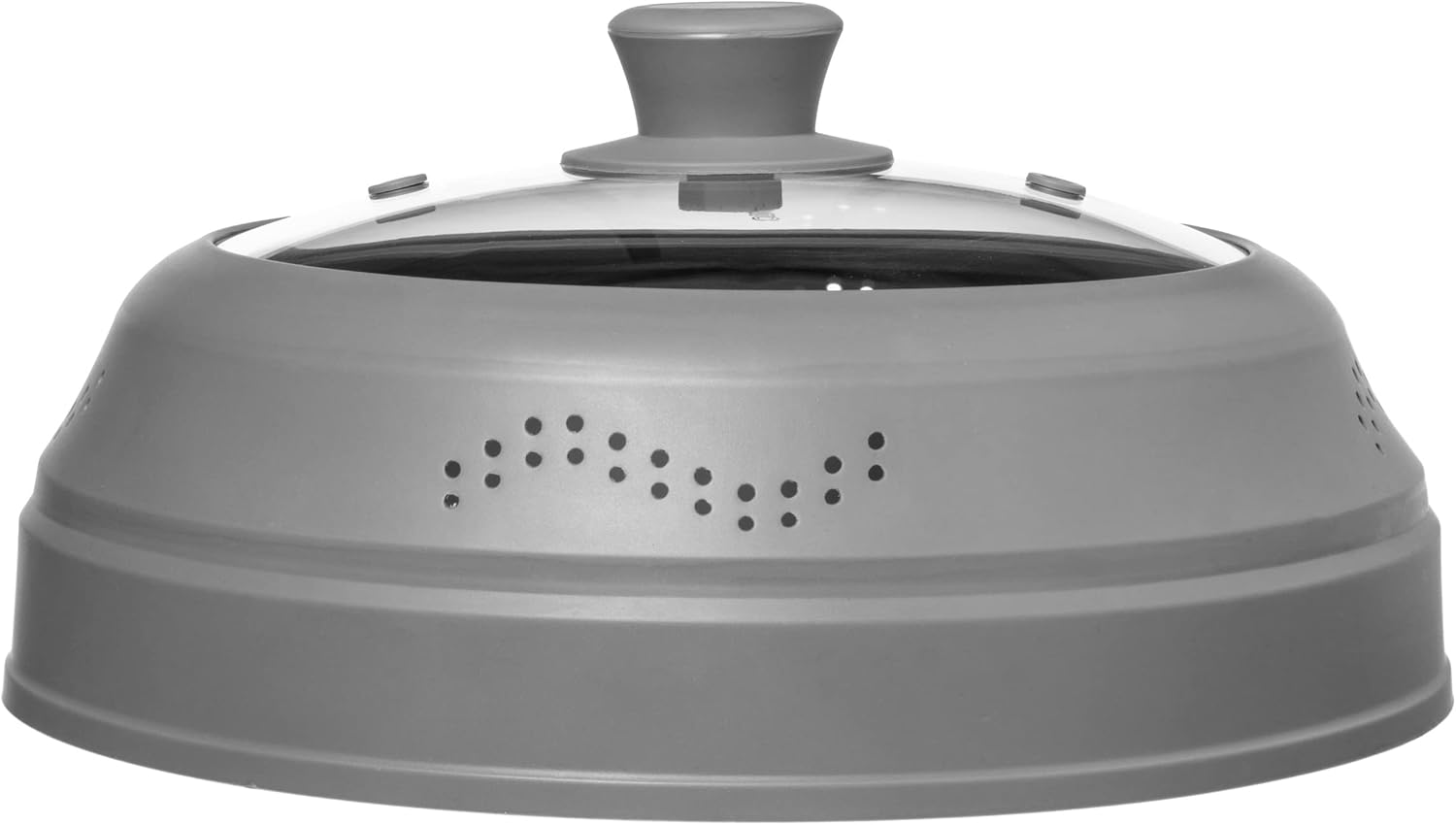 Microwave Splatter Cover for Food - Silicone Glass Dish Plate Cover, Vented with Silicone Grip Handle Knob, Collapsible, Food Grade, Microwave, Dishwasher Safe - 10" Inch