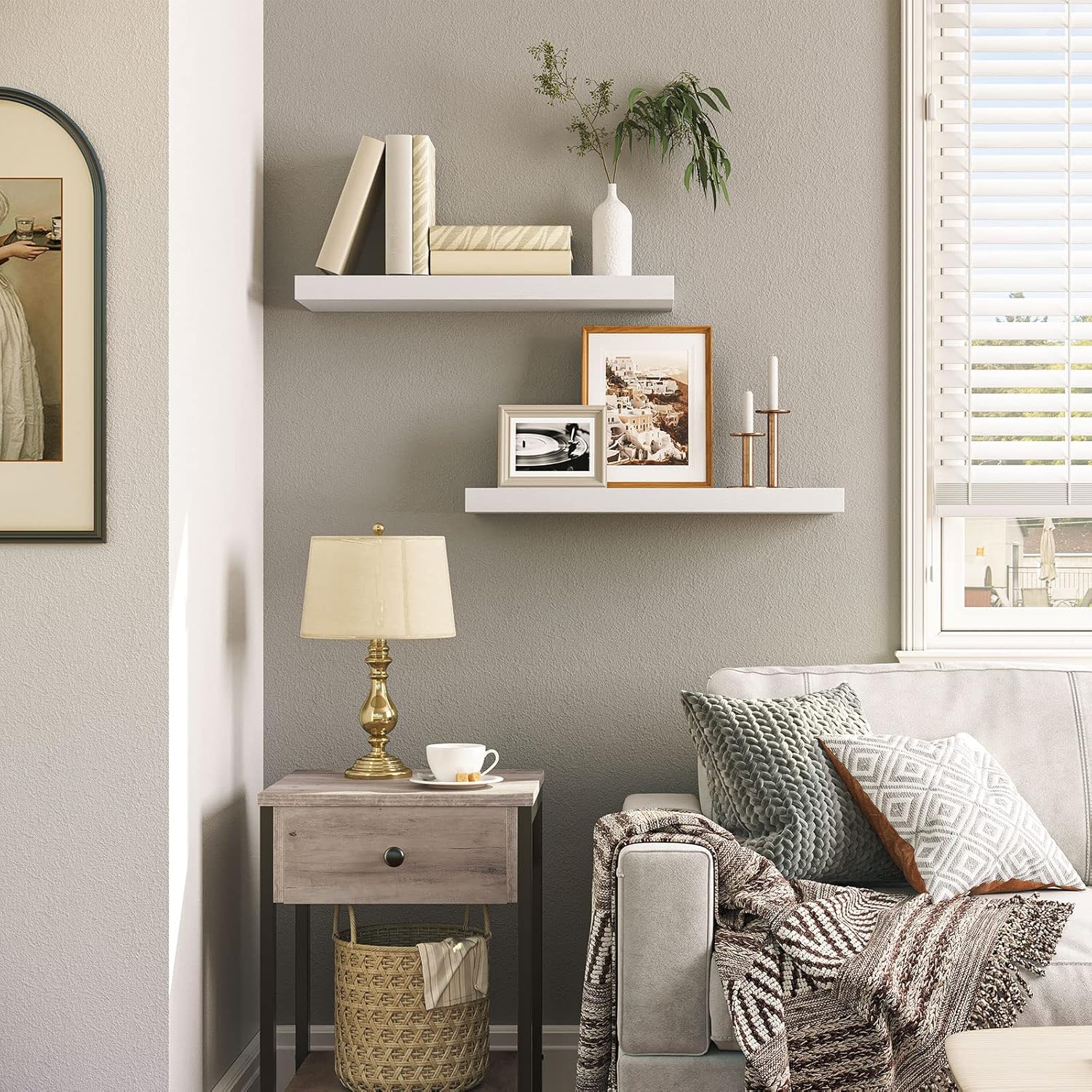 HOOBRO Floating Shelves for Wall, Wall Mounted Shelf Set of 2, 23.6" Hanging Shelf with Invisible Brackets, for Wall in Bathroom, Bedroom, Toilet, Kitchen, Living Room, Office, White WT60BJ01