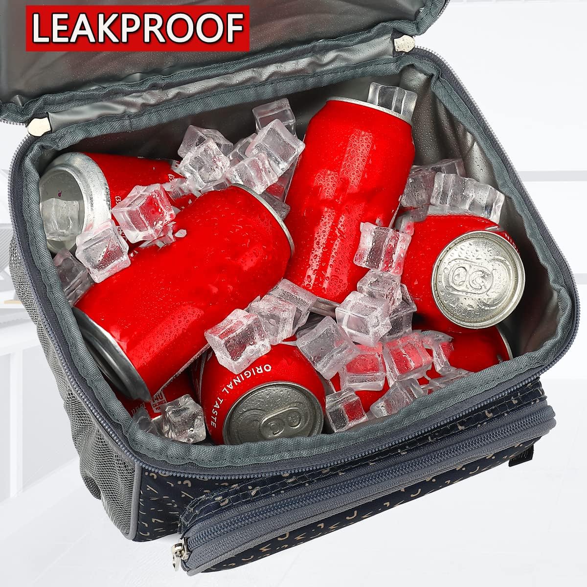 FlowFly Double Layer Cooler Insulated Lunch Bag Adult Lunch Box Large Tote Bag for Men, Women, With Adjustable Strap,Front Pocket and Dual Large Mesh Side Pockets