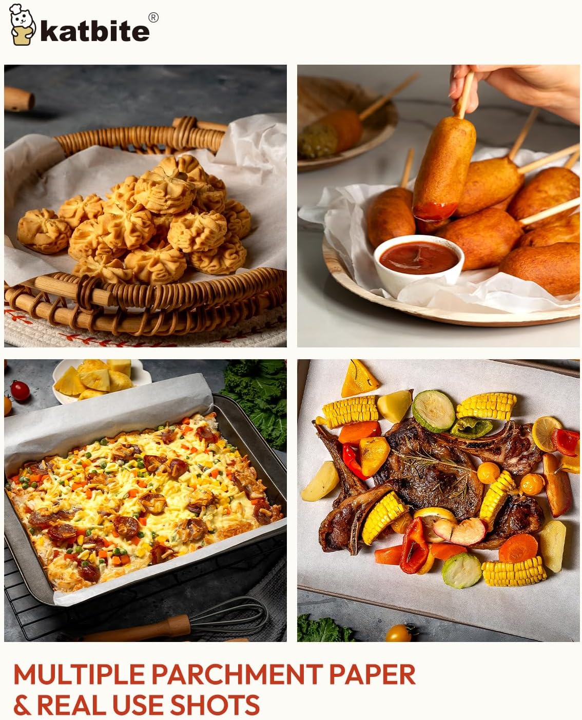 Katbite Parchment Paper, Heavy Duty 12x16 inches Baking Paper, 300 Sheets Oil-proof and Non-stick Parchment Paper Sheets Perfect for Air Fryer, Grilling,Cooking and Wrapping [Advanced Series]