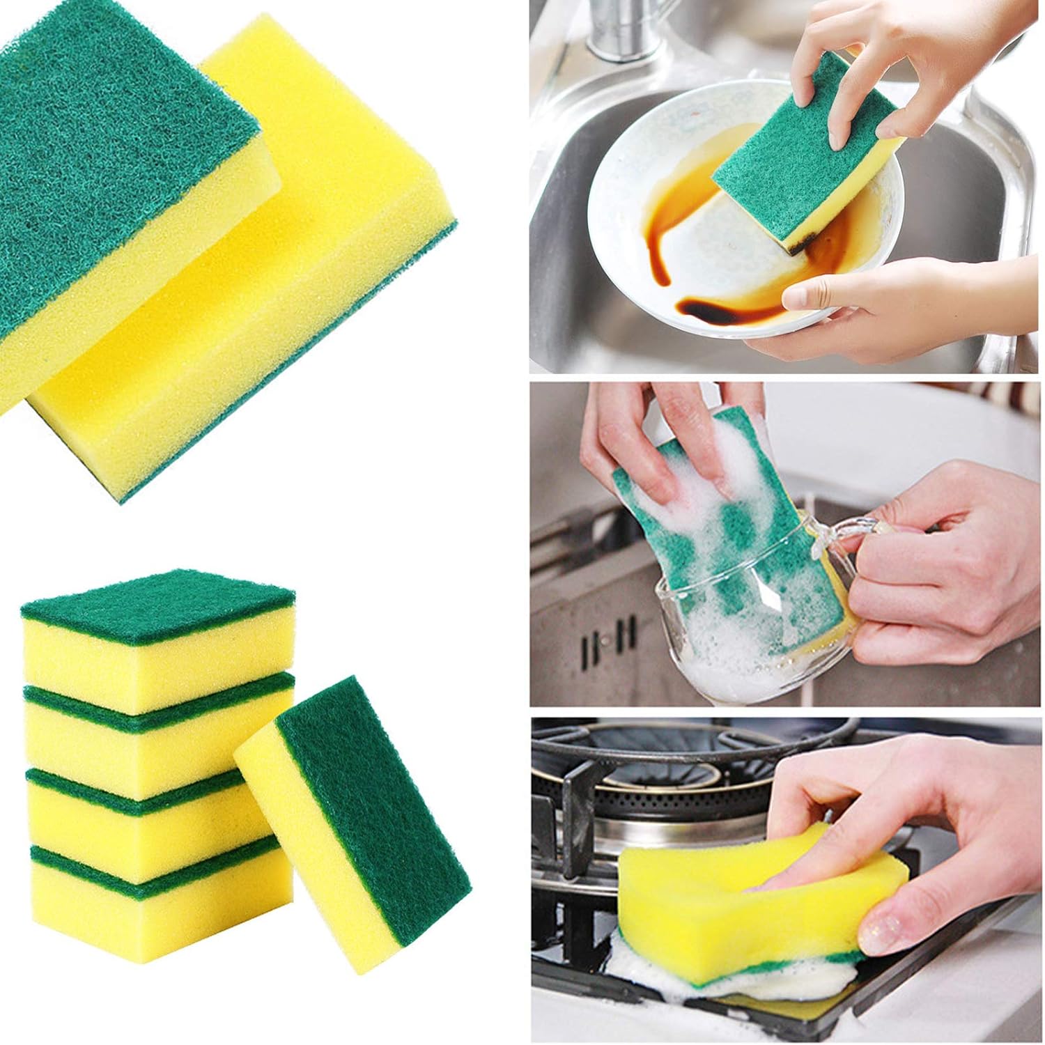 - Two-Sided: The kitchen sponges is composed of two different materials. The delicate yellow soft sponge layer is used to clean special glassware, and the green frosted layer can remove hard dirt on pots and pans