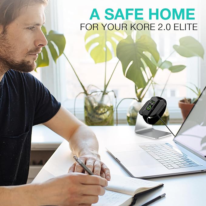 - STRONG, STURDY FITNESS TRACKER HOLDER FOR STABLE CHARGING - This sturdy aluminum smart watch stand allows you to charge the Kore step counter for walking safely and conveniently. Solid build prevents the Kore fitness watch 2.0 from falling to the floor while it charges.
