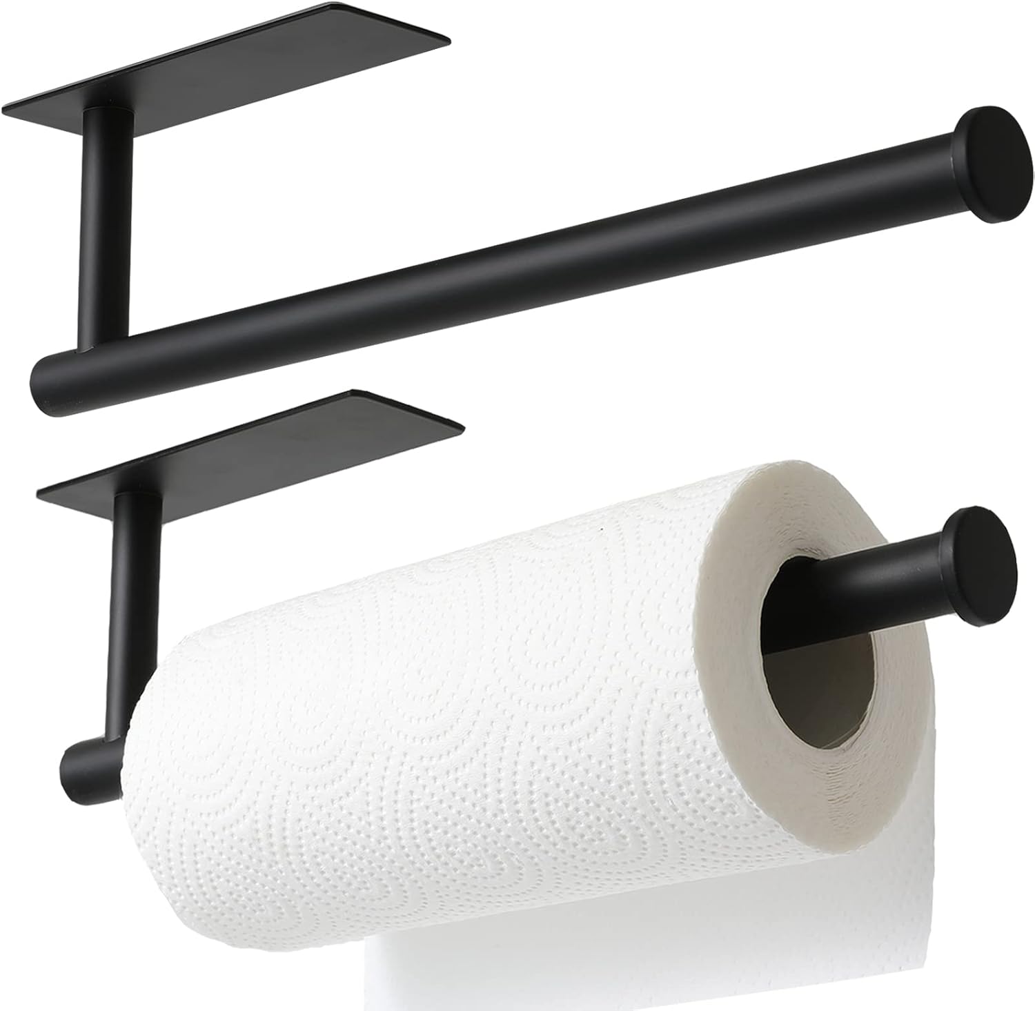 theaoo 2 Packs Paper Towel Holder - Under Cabinet Paper Towel Holder for Kitchen, Adhesive Paper Towel Roll Rack for Bathroom Towel, Wall Mounted Matte Black Paper Towel Rack, SUS304 Stainless Steel
