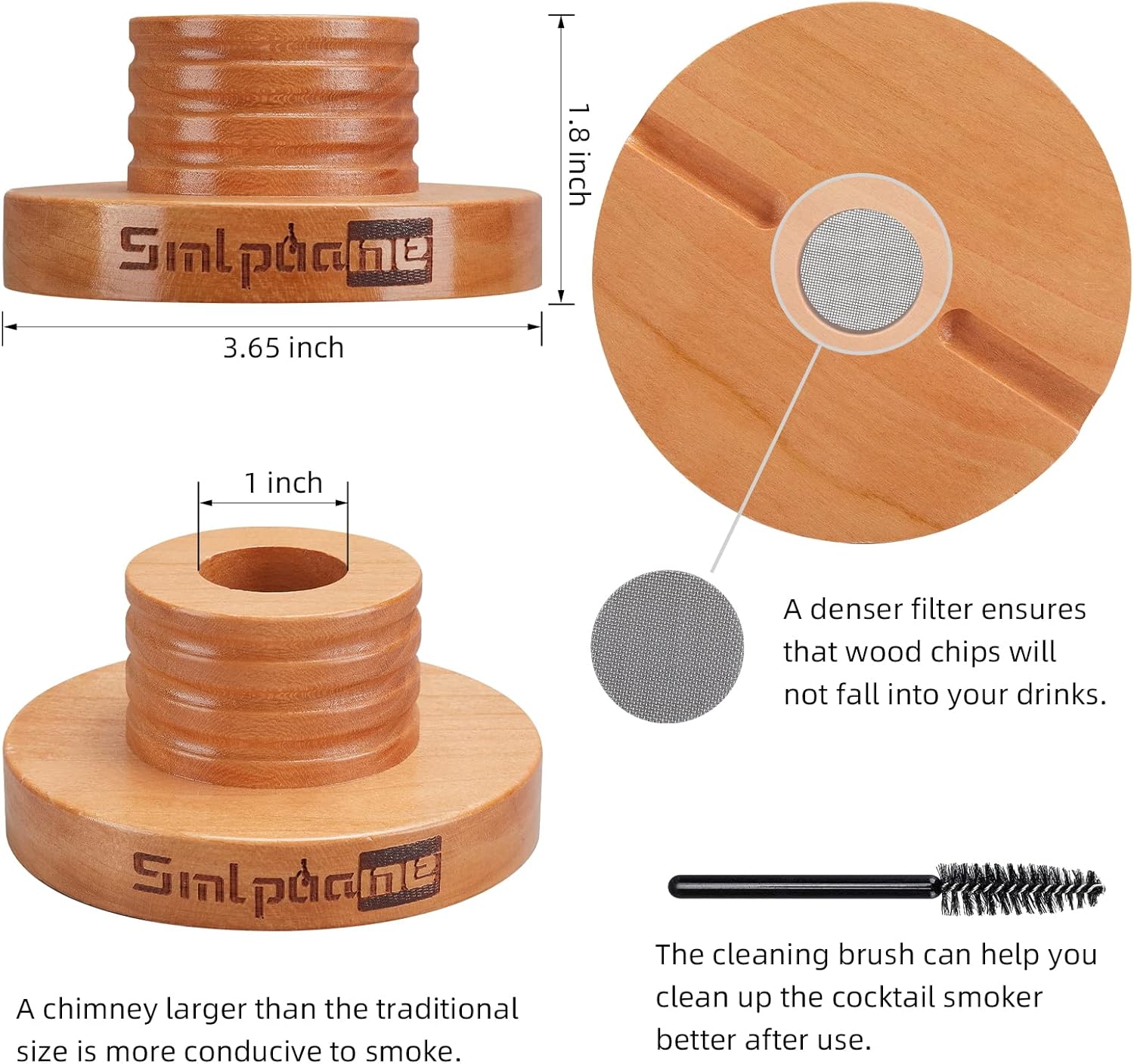 - [Easily become a cocktail craftsman] The cocktail smoker is made of natural cherry wood, and the improved design of the enlarged chimney easier to emit smoke, can fill your glass with thick smoke within 10 seconds and give off a strong flavor. even if you are a beginner, as long as you have it, you can easily become a professional bartender.