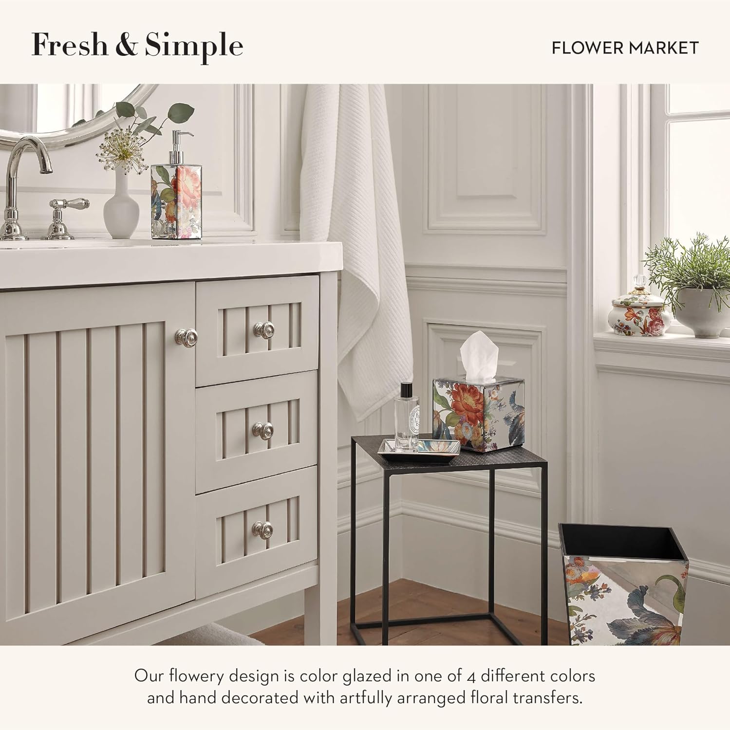 - ELEGANT ROOM ESSENTIALS: This bathroom tray and jewelry dish brings elegant style to your sink countertop and has a Flower Market Reflections design. It features a floral motif that’s printed under glass for a look that will bloom year-round.