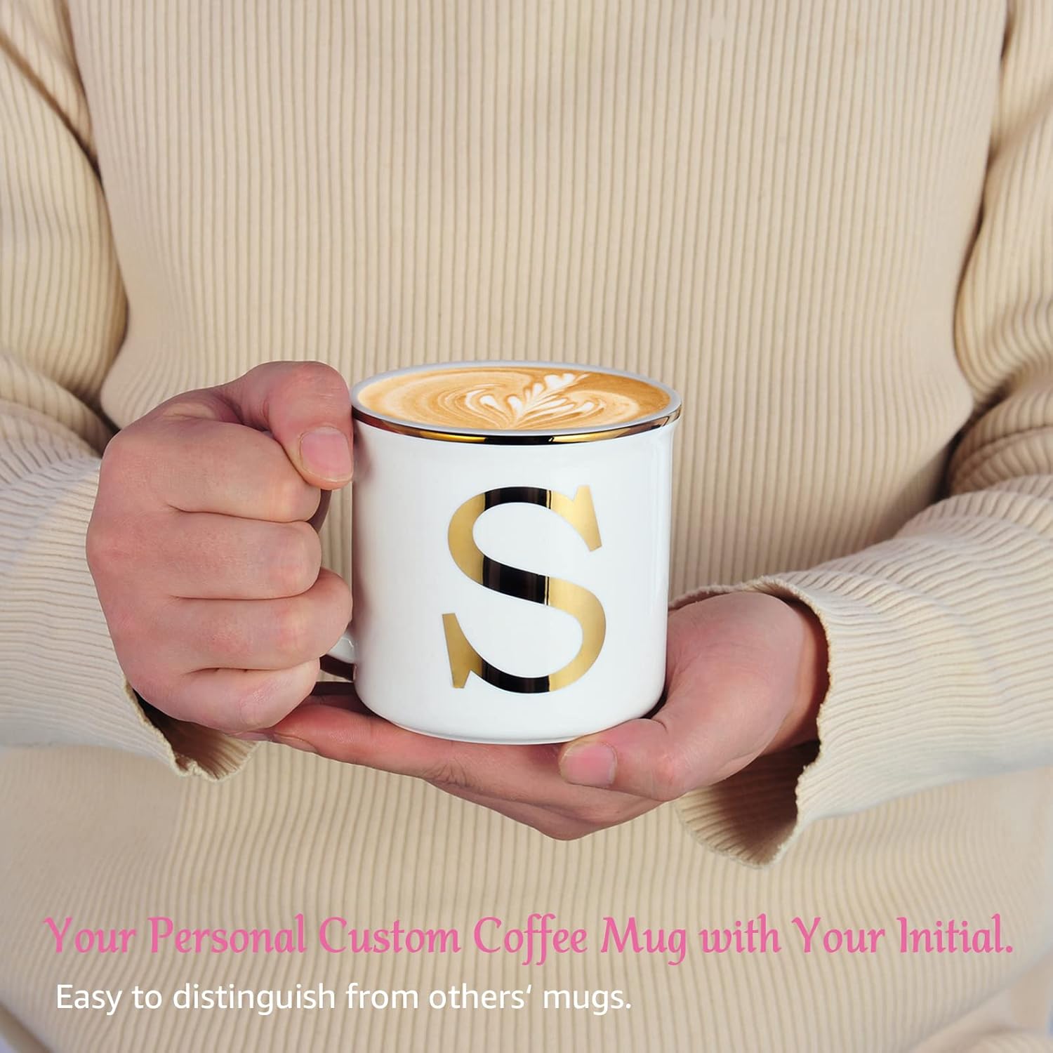 Miicol Ceramic Coffee Mug 16 oz, Monogram Coffee Cup, Golden Initial Tea Mug, Personalized Tea Cup, Unique Gift, Large Mug for Home, Office, Letter S