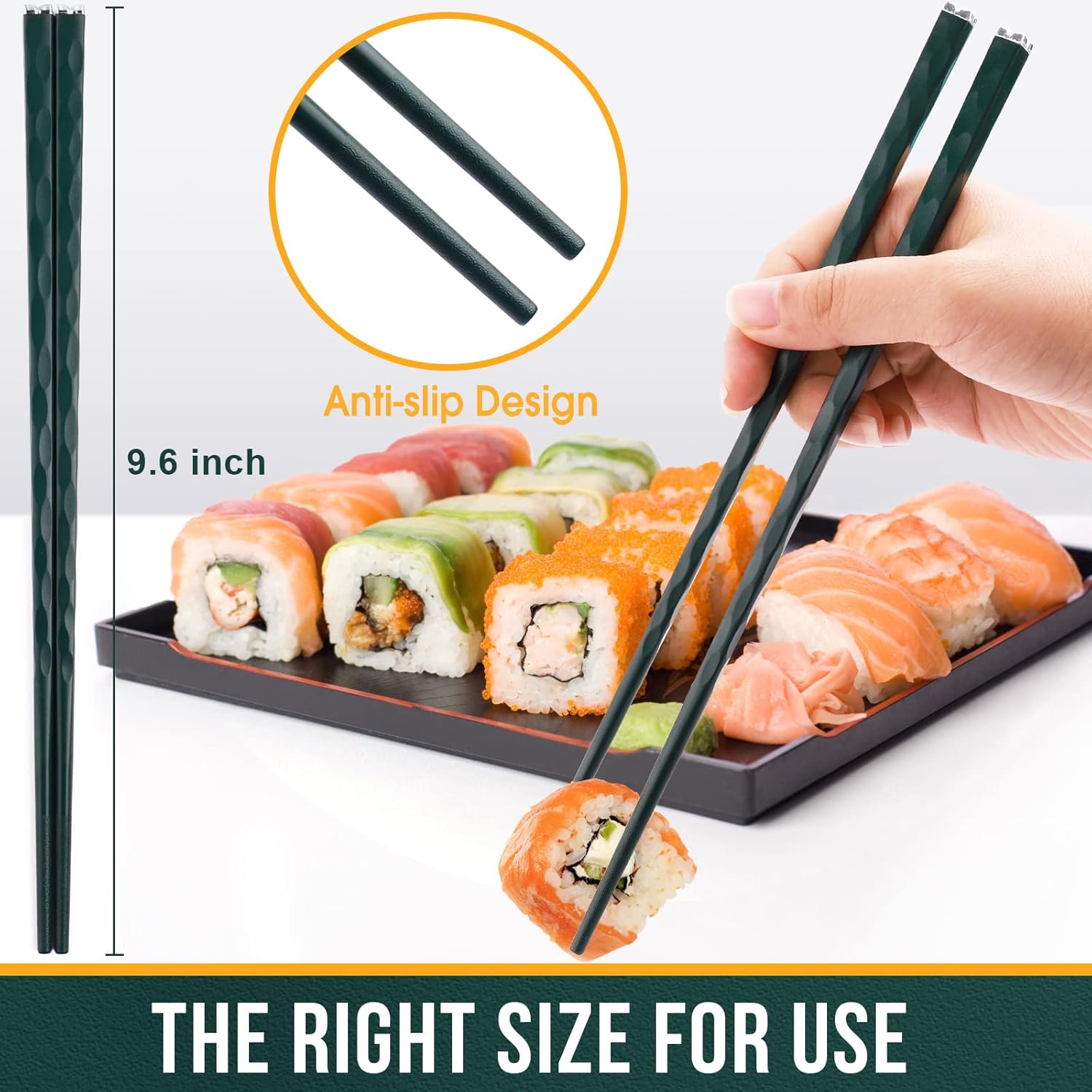 - 【Value 5 Pairs Elegant Chopsticks Set】Our cute chopsticks set is decorated with natural green color and embellished silver metal head, which are very stylish and modern. You can feel different Asia customs when you can enjoy Asia food such as sushi and ramen or even General Tso’s Chicken.